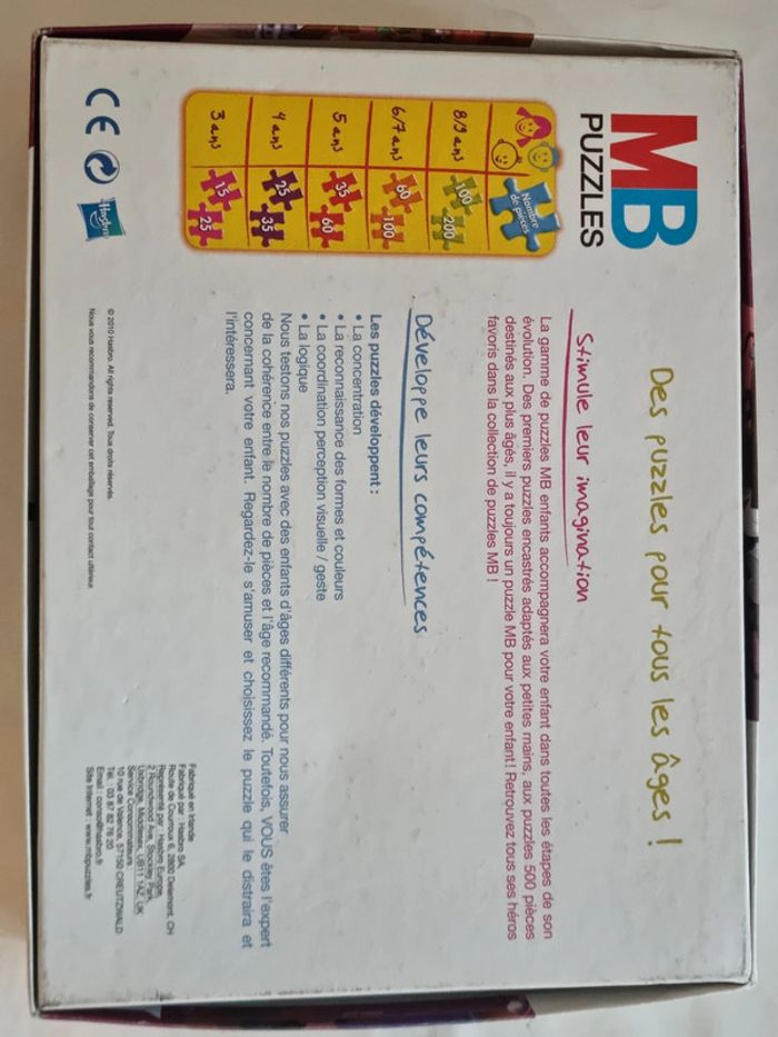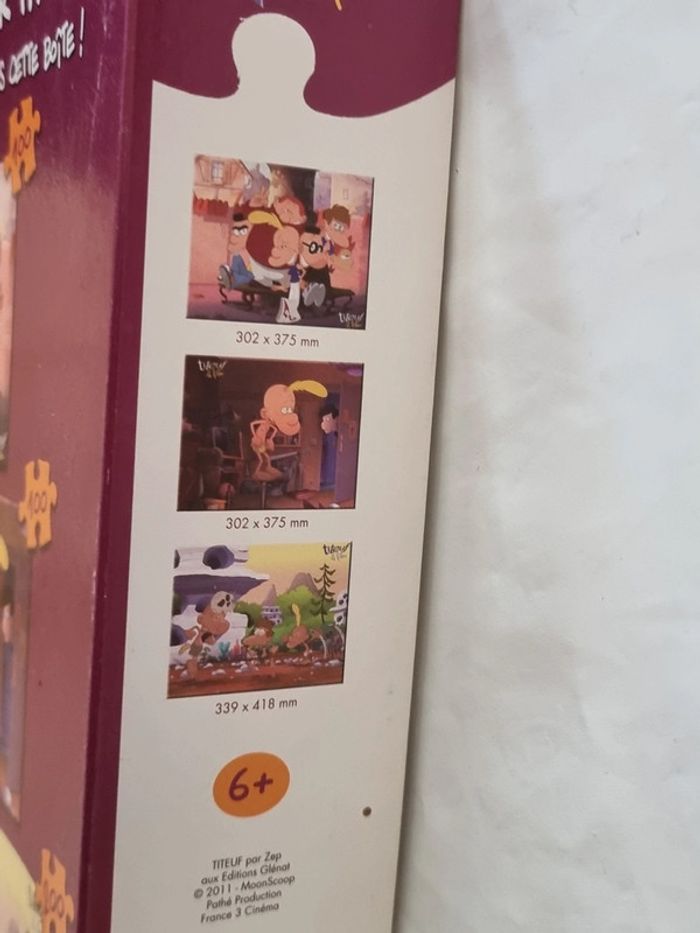Master pack 3 puzzles Titeuf le film MB Dès 6 ans D'après le fabricant conseillé pour âge de 8 - 9 ans Très bon état. Boîte en très bon état, puzzles complets et en très bon état. Voir photos. Chaque puzzle est remis dans un sachet bien séparé. 2 puzzles de 100 pièces 1 puzzle de 200 pièces Grands puzzles. Les 100 pièces font plus de 30×37 cm. Le 200 pièces fait près de 34×42 cm. #angel_enfant_jeu_puzzle