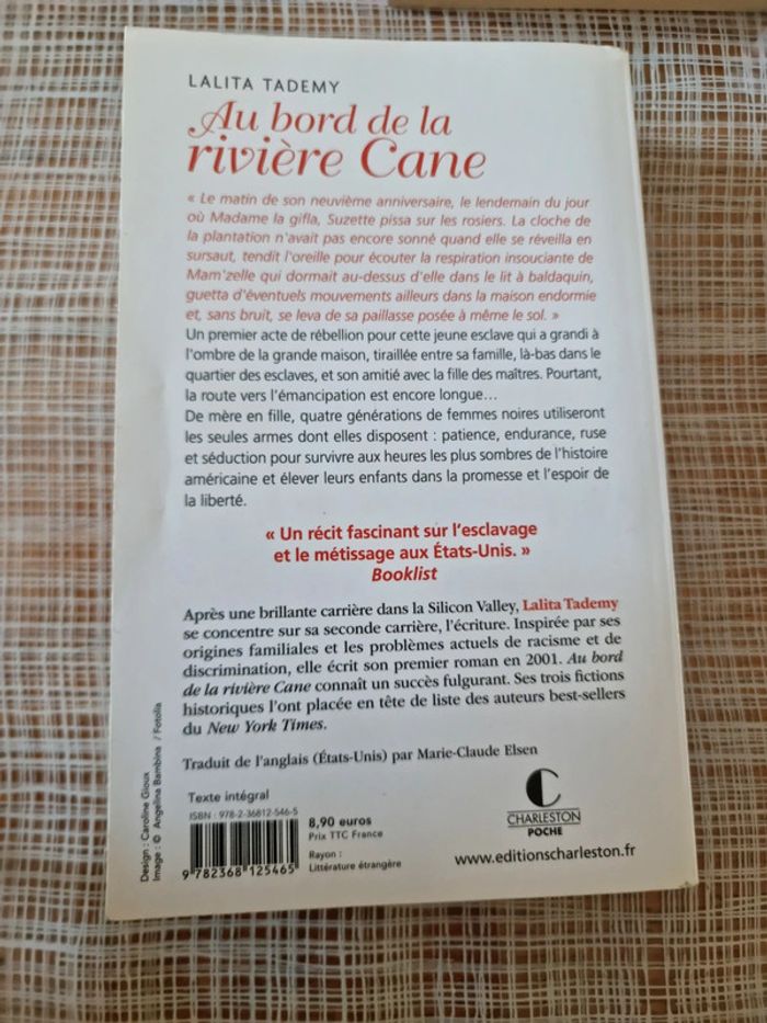 La plantation Leila Meacham Livre de poche Charleston poche En très bon état Caroline du Sud, 1835. Silas Toliver n'a qu'un seul rêve, celui de partir pour le Texas avec sa bien-aimée Lottie, pour y établir une plantation. Mais lorsqu'il est privé de son héritage et se retrouve sans argent, il voit son rêve s'écrouler. Fille d'un riche propriétaire terrien, Jessica Wyndham a caché un esclave fugitif. Pour laver l'honneur de la famille, son père propose un marché à Silas : il financera son expédition vers l'Ouest s'il accepte d'épouser Jessica et de partir avec elle. Réussiront-ils à surmonter leurs différences et à vivre heureux ensemble ? Et quelle est cette mystérieuse malédiction qui semble toucher les Wyndham et les Toliver ? Au bord de la rivière Cane Lalita Tademy En très bon état « Le matin de son neuvième anniversaire, le lendemain du jour où Madame la gifla, Suzette pissa sur les rosiers. La cloche de la plantation n'avait pas encore sonné quand elle se réveilla en sursaut, tendit l'oreille pour écouter la respiration insouciante de Mam'zelle qui dormait au-dessus d'elle dans le lit à baldaquin, guetta d'éventuels mouvements ailleurs dans la maison endormie et, sans bruit, se leva de sa paillasse posée à même le sol. » Un premier acte de rébellion pour cette jeune esclave qui a grandi à l'ombre de la grande maison, tiraillée entre sa famille, là-bas dans le quartier des esclaves, et son amitié avec la fille des maîtres. Pourtant, la route vers l'émancipation est encore longue... De mère en fille, quatre générations de femmes noires utiliseront les seules armes dont elles disposent : patience, endurance, ruse et séduction pour survivre aux heures les plus sombres de l'histoire américaine et élever leurs enfants dans la promesse et l'espoir de la liberté. « Un récit fascinant sur l'esclavage et le métissage aux États-Unis. » Booklist #angel_livre_adulte_roman_sentimental