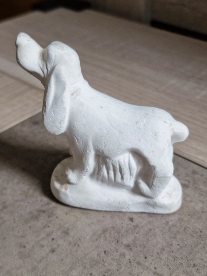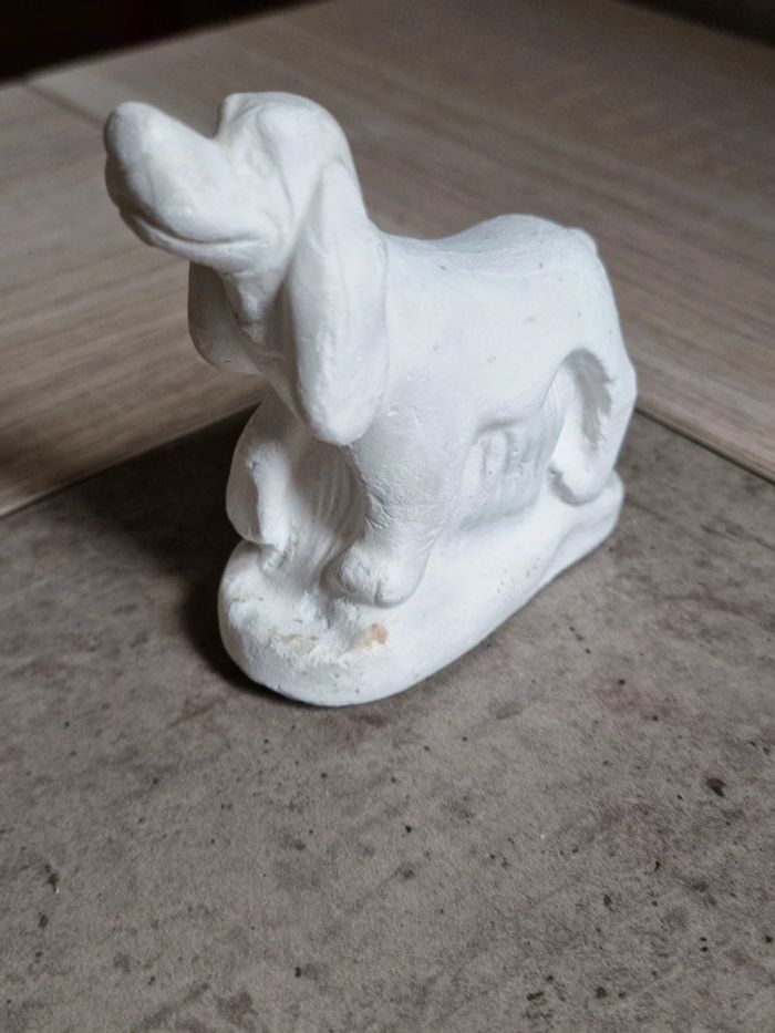 Plâtre à peindre chien Rouky Vintage Neuf. Exposé et très légèrement tacheté par les années. Ne gênera en rien si peint. Je n'ai pas osé le laver car c'est du plâtre. #angel_enfant_jeu_loisircréatif