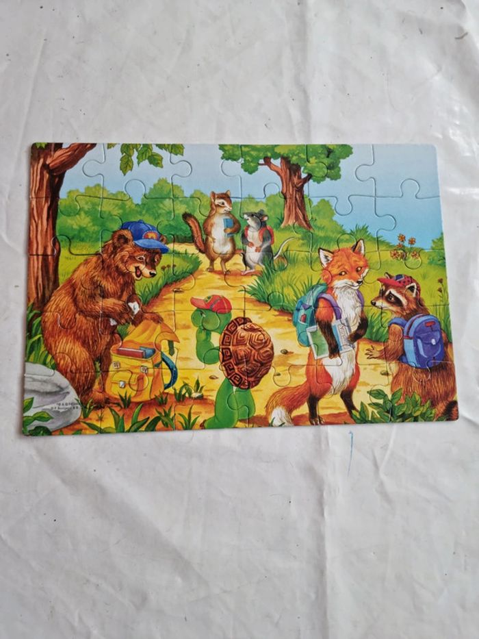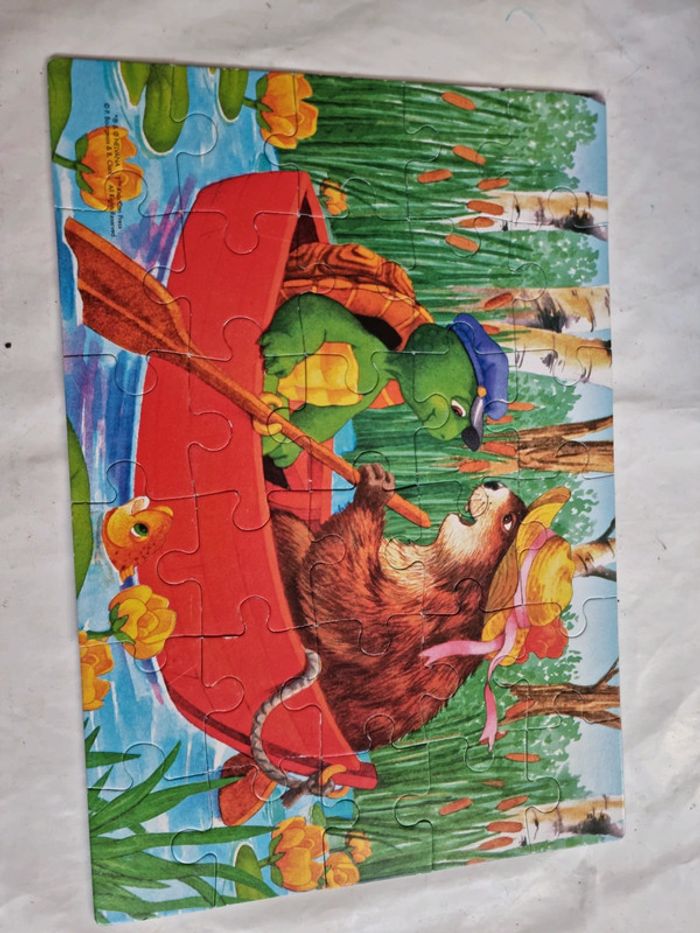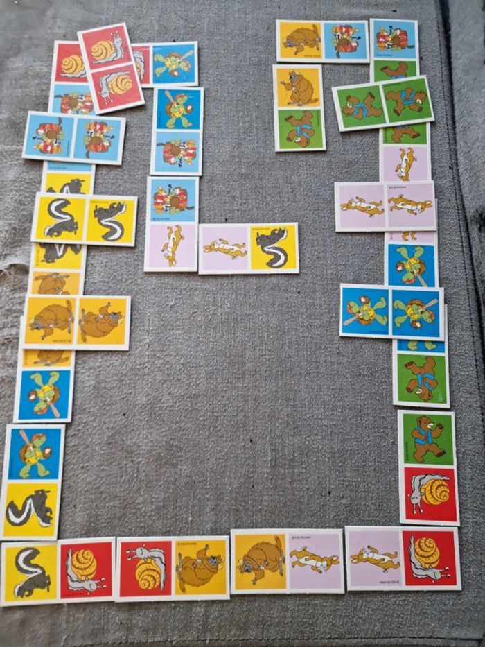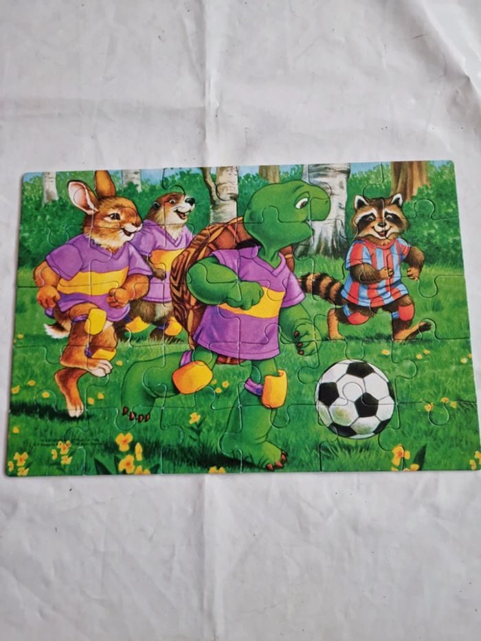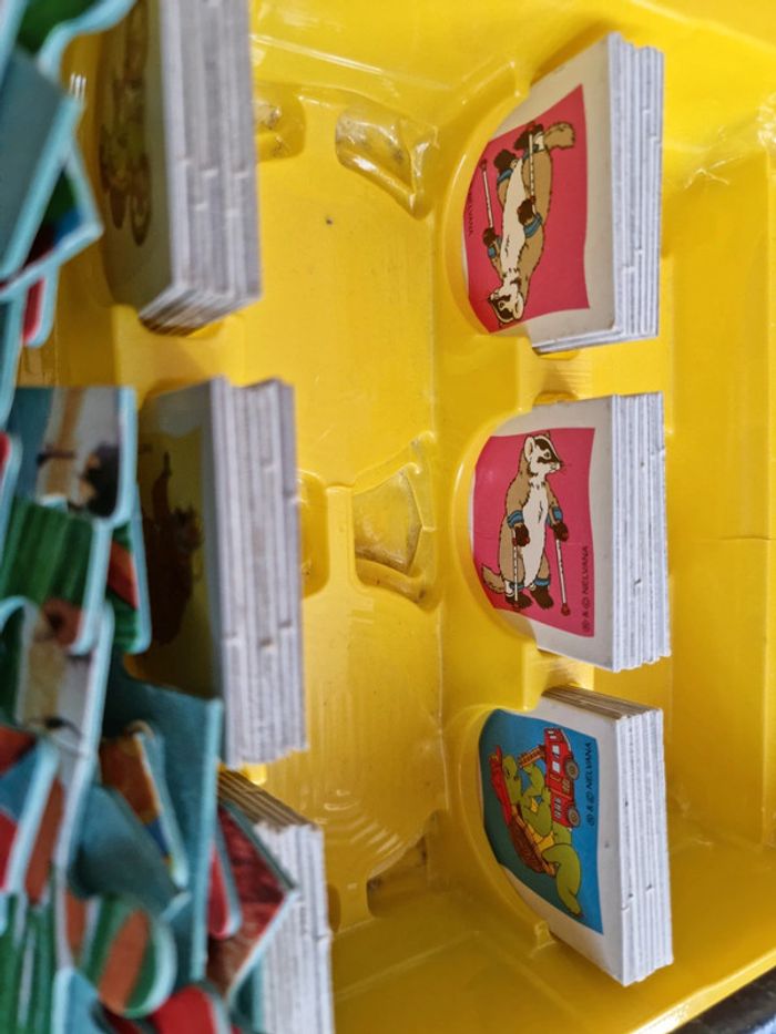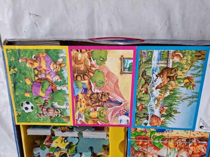 Malette de jeux Franklin EDUKIT de Clementoni Vintage début années 2000 Dès 3 ans 4 jeux réunis dans une malette éducative pour des heures de jeux et d'amusement : des cubes, des dominos, un memory et 3 puzzles sur le thème du célèbre Franklin la tortue. Plein de petits jeux, tous différents les uns les autres, qui permettrons de passer de bons moments avec Franklin et ses amis. Contenus du jeu : Jeu de 9 cubes complet, les posters pour reconstituer plus facilement l'image. Les bords possèdent un cadre de couleur différente pour chaque image afin de faciliter encore plus la résolution du jeu. un jeu de domino de 27 cartes. Le fond uni et les différents animaux permettent de différencier aisément les dessins, pour aider à l'apprentissage du jeu. 3 puzzles 30 pièces, complets, avec posters. Les pièces sont assez grandes et les puzzles assez simples à réaliser. Un jeu de mémory de 48 cartes complet. Le fond uni et les différents animaux permettent de différencier aisément les dessins, pour aider à l'apprentissage du jeu, comme pour le jeu de dominos. En très bon état général. Le jeu a été utilisé mais les cartes restent en très bon état. La boîte est en bon à très bon état. Voir les photos #angel_enfant_jeu_éducatif