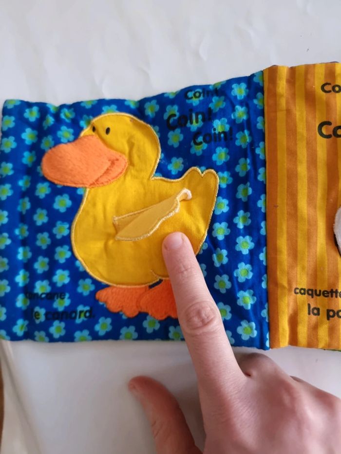 Mon premier livre tout doux Animaux de la ferme Rettore As et France Loisirs Un livre entièrement en tissu matelassé, avec des inserts de différents matériaux et brodés en couleur. Avec différentes sensations, livre à toucher, cache cache (nombreux volets), bruissement, miroir, et pouet pouet. Très bon état. #angel_livre_bébé_tissus