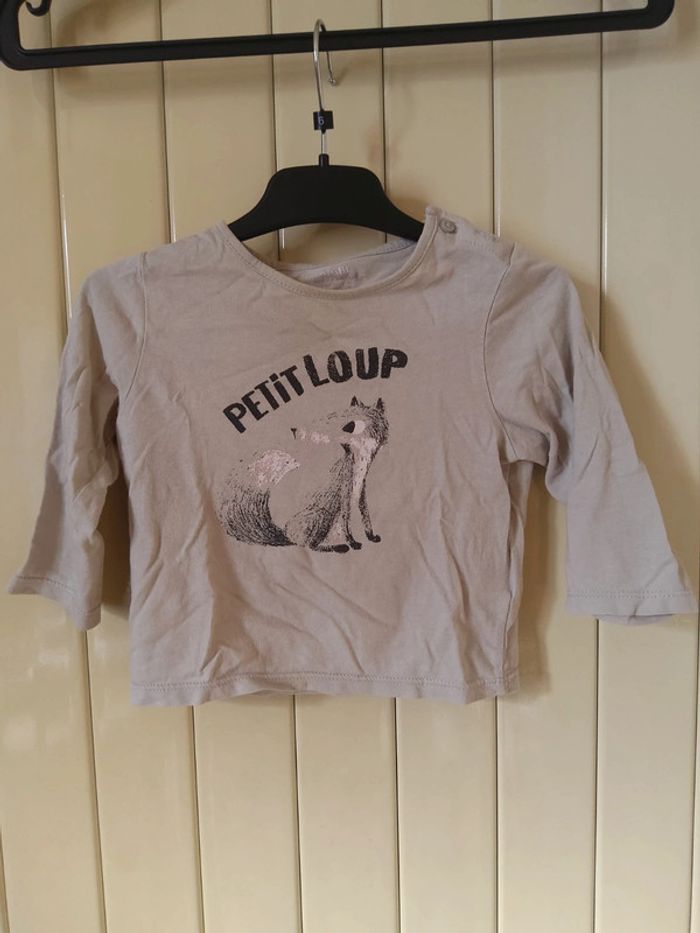 T-shirt manches longues gris clair. 12mois/73-76cm