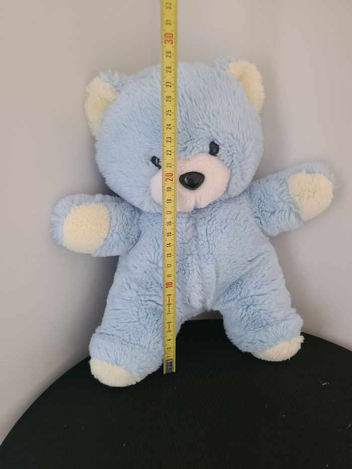 ancienne peluche vintage doudou ours bleu oreille jaune boulgom 130