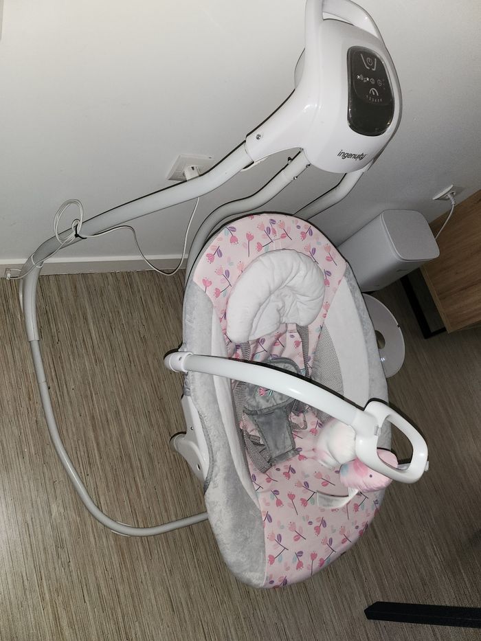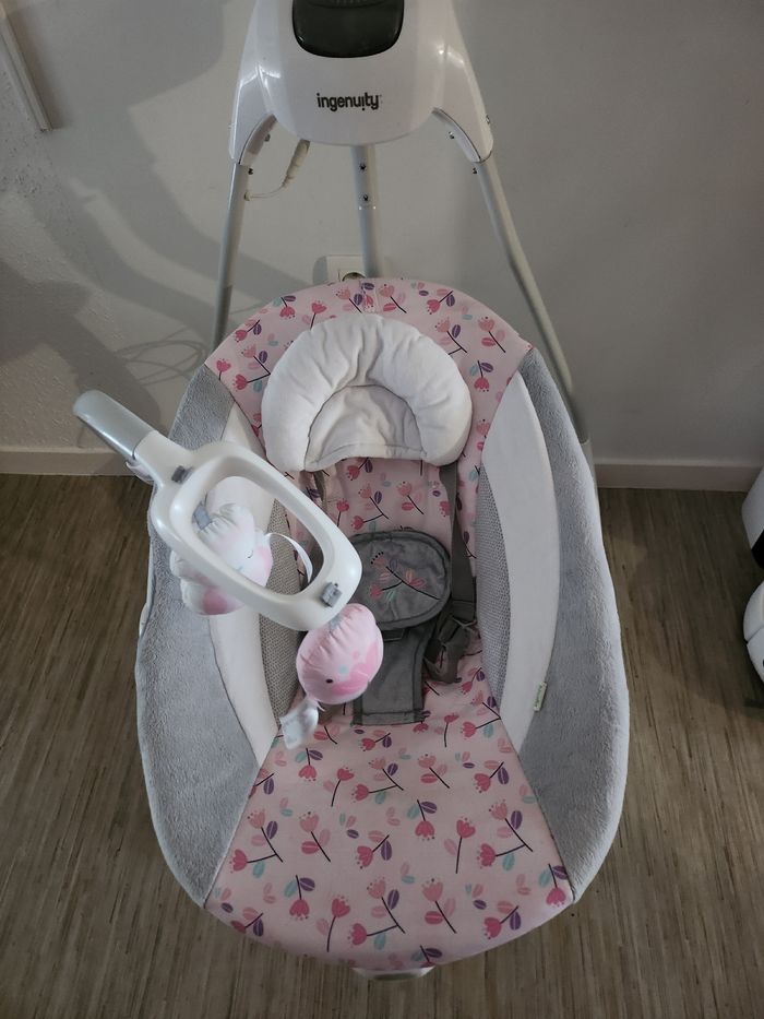 Balancelle ingenuity très bon état La balancelle pour bébé INGENUITY Cassidy offre un confort optimal grâce à son siège pivotant à 180° et ses 6 vitesses de balancement. Elle est équipée d'un mobile avec jeux, d'effets sonores et de vibrations ( bruits blanc et berceuse musique. On peut régler le niveau sonore ) . Légère et facilement déplaçable, elle convient aux bébés de 0 à 9mois.
