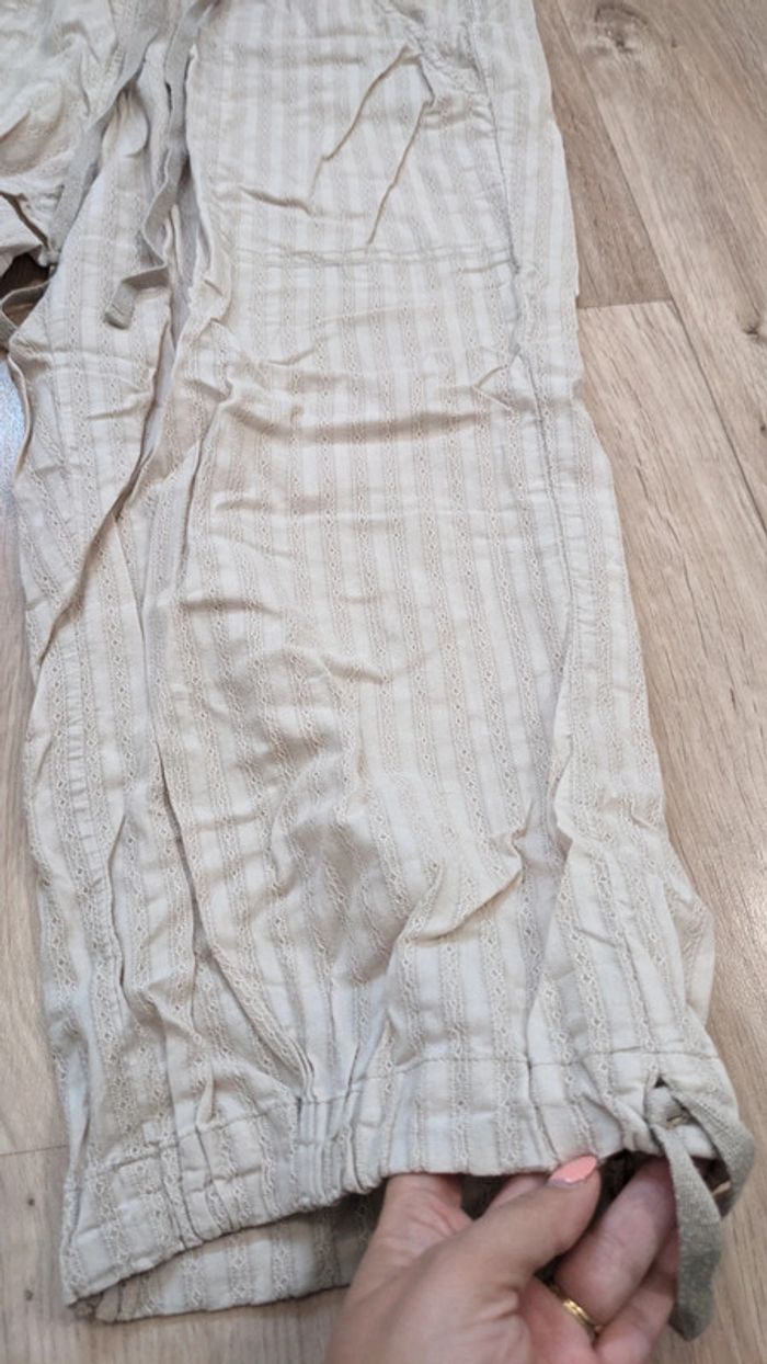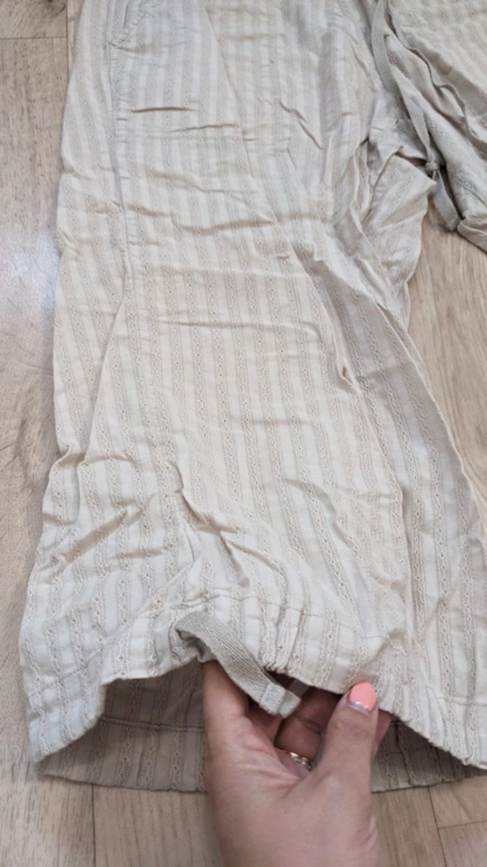 Peut se resserrer aux mollets grâce aux cordons. Serrage à la taille aussi grâce au cordon Fluide et léger, très bon état général, comme sur les photos Grosses réductions sur les lots et beaucoup d'articles dans mon dressing ! Profitez en ! 🤗😉 Dressing trié par taille -> #miladys44 Pour les autres tailles: voir la liste dans la description de mon profil, visitez mon dressing ou demandez moi 😉 #pantacourt #hm #beige #été #leger #coton Cai E