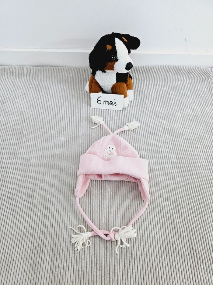 Bonnet polaire rose cache oreilles bébé fille 6 mois