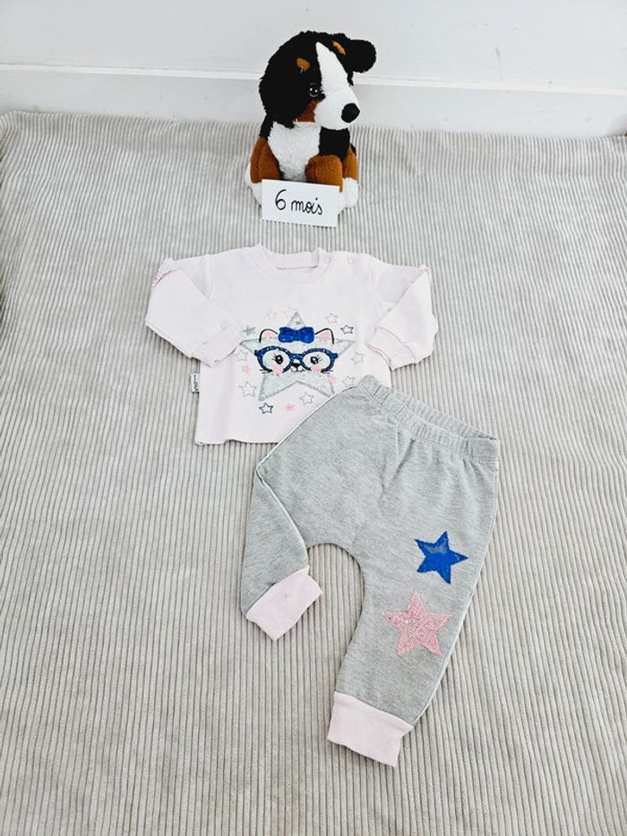 Ensemble type sweat et pantalon jogging étoiles bébé fille 6 mois