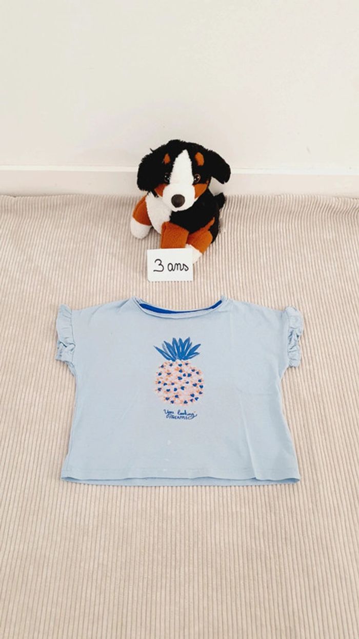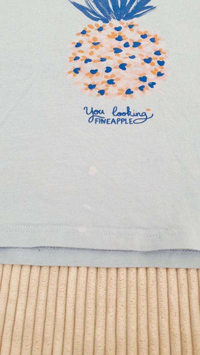 Bonjour, Je vends un tee shirt manches courtes pour petite fille Idéal saisons printemps été mi saison Taille 3 ans - 36 mois Couleur bleu clair ciel Motif fruit ananas En très bon état, 3 tâches visibles en photo. Réduction sur les lots N'hésitez pas à parcourir mon dressing, et à vous abonner beaucoup d'articles encore à venir ! #VintedGift #cadeau #anniversaire #Noël #bébé #cadeaunaissancefille #haul