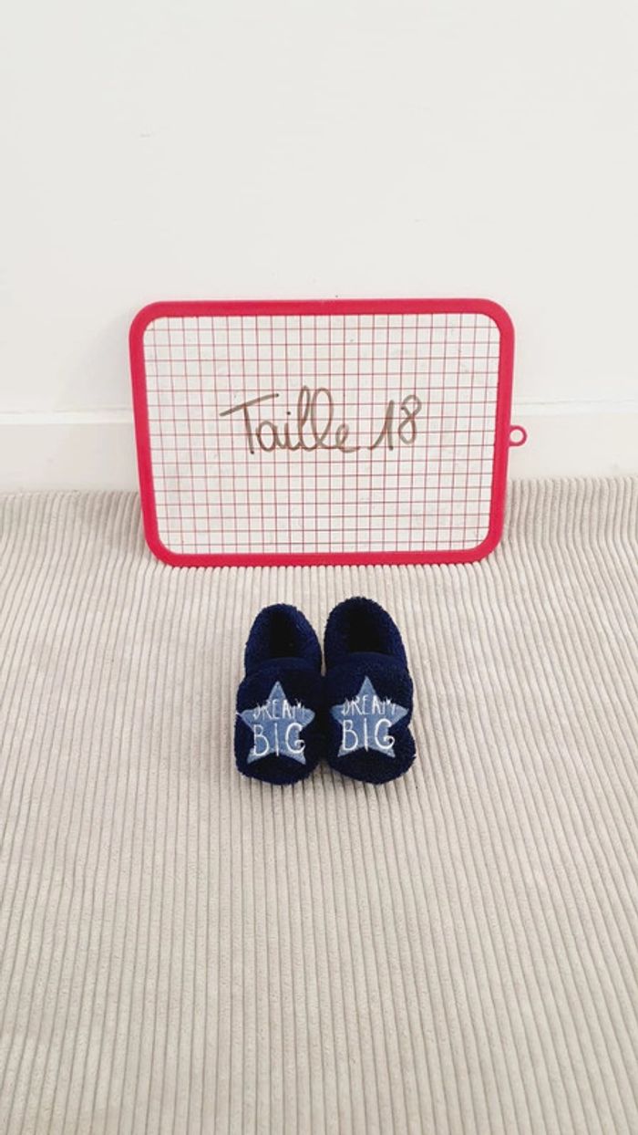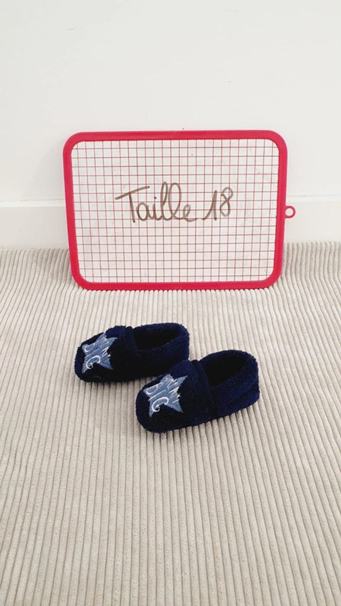 Paire de chaussons en velours polaire bleu marine bébé fille ou garçon taille pointure 18 - photo numéro 1
