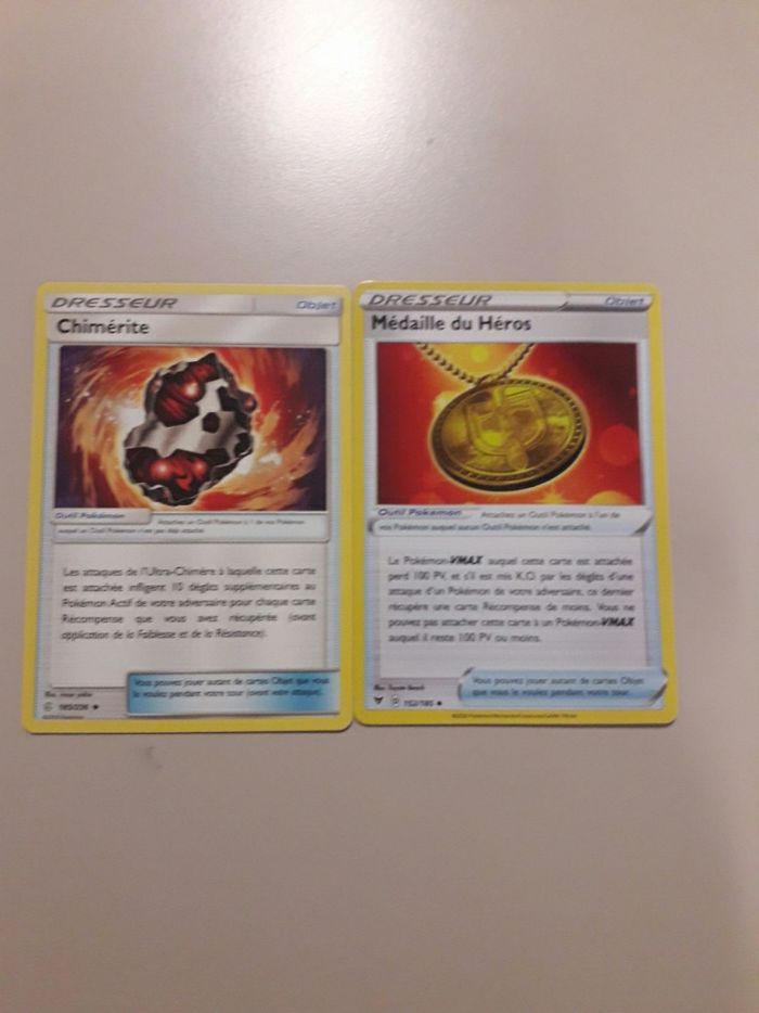Chimérite + Médaille du Héros lot de 2 cartes Pokémon neuves