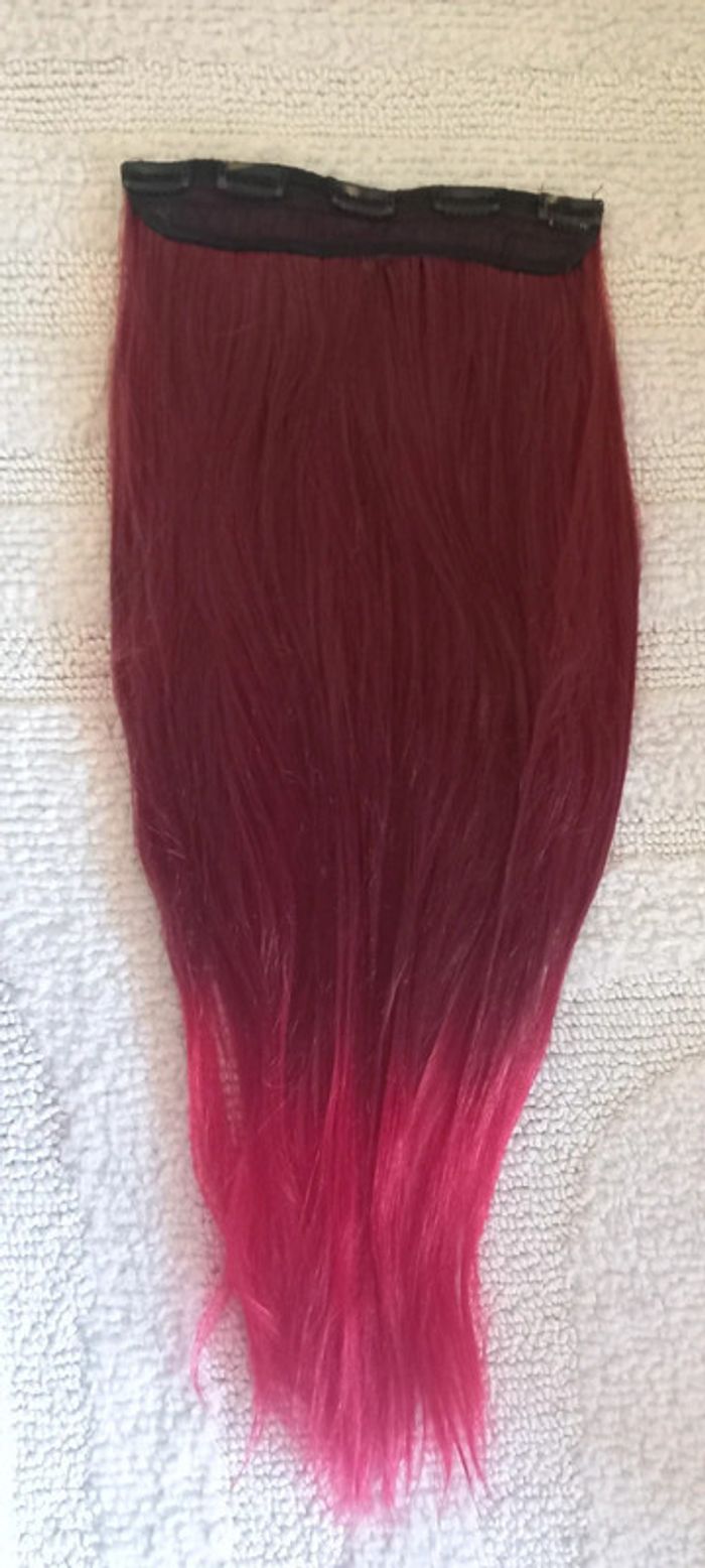 Largeur 23,5 cm Longueur 64 cm Dégradé de rouge / tye & dye Bon état Peu portée et toujours bien entretenue Cheveux synthétiques