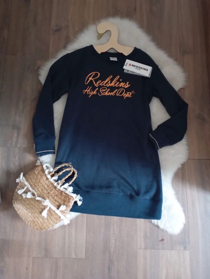 Neuf et étiquette parfaite pour le rentrée scolaire ! Matière épaisse un peu polaire bien chaude pour cet hiver pour une futur pré-ado 😅 Bleu marine et écriture doré a porter comme une tunique ou un long pull #redskins #izianadouzeans #neuf #iziananeuf