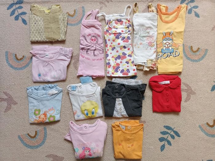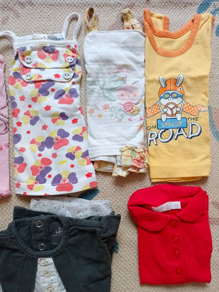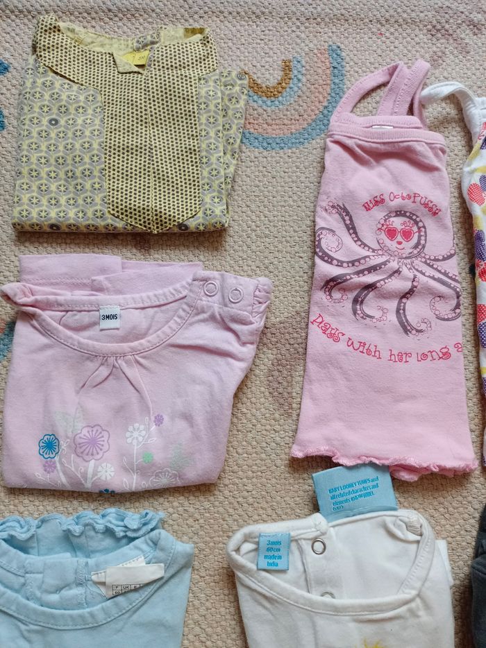 Lot 12 t-shirt débardeur bébé fille 3 mois été, voir photos à l'unité sur mon dressing, propre, maison non fumeur. N'hésitez pas à faire des lots -40% d'activé