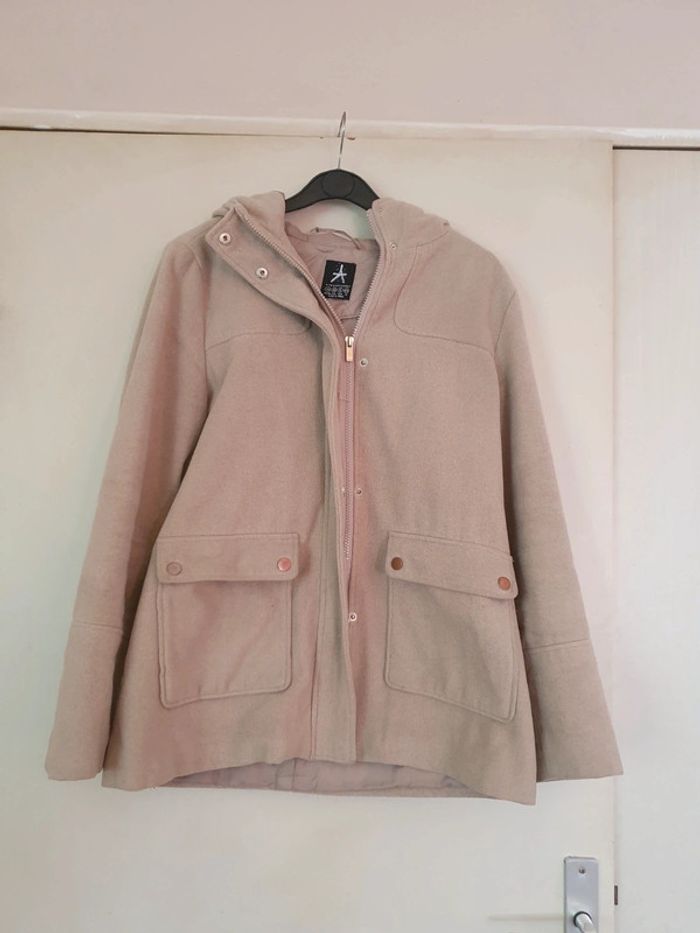 Manteau beige Primark. Porté plusieurs fois mais encore en bon état. Quelques petit défauts dû à l'usure (voir photo au dessus de l'étiquette). Quelques bouloches mais peuvent être retirer facilement. #manteau #primark #beige #hiver