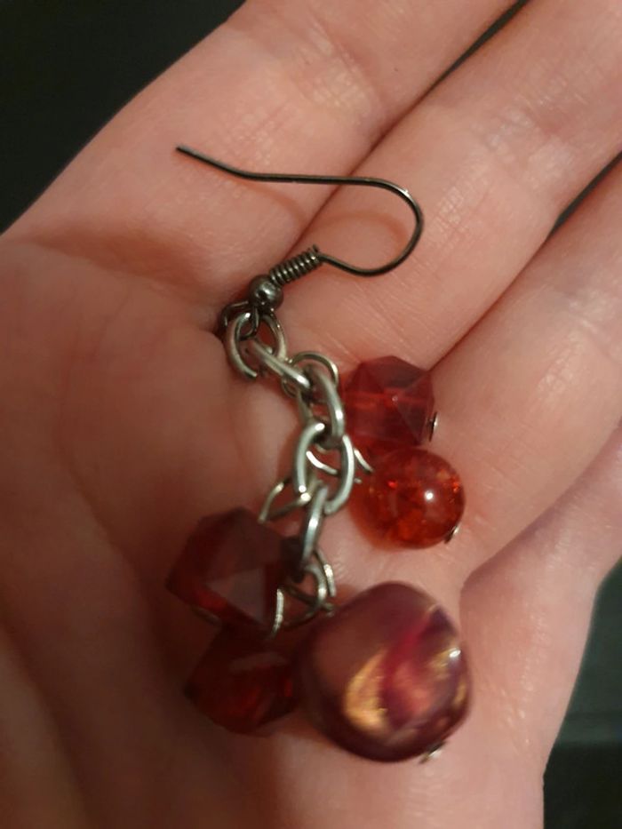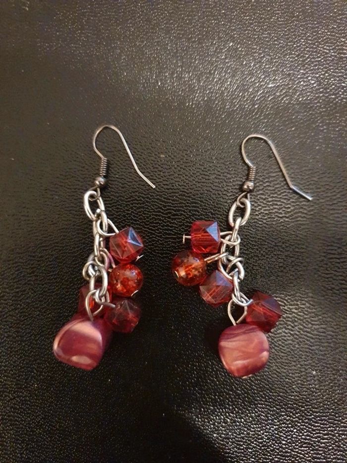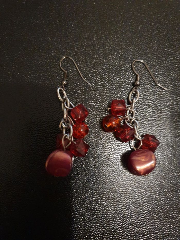 Boucles d'oreilles avec perle rouge. Porté 1 ou 2 fois grand max. #bouclesdoreilles #perle #rouge #pendante