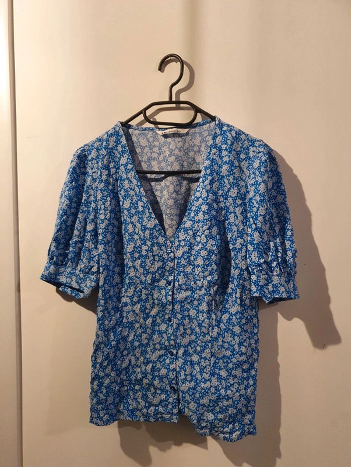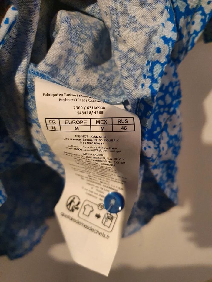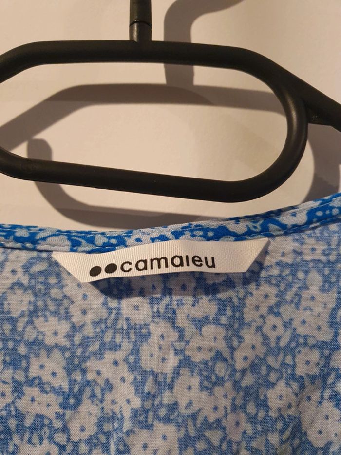 Top Camaieu bleu à fleur blanche, cintré. Jamais porté, neuf taille M. Acheté 35.99 #top #camaieu #neuf #bleu #blanc #fleurs #blouse #cintré