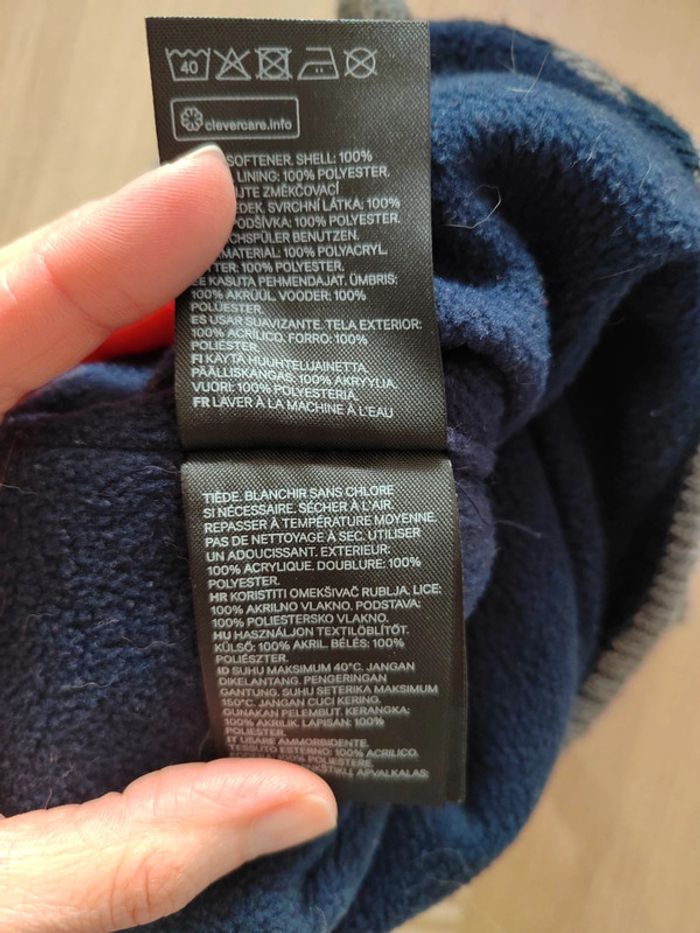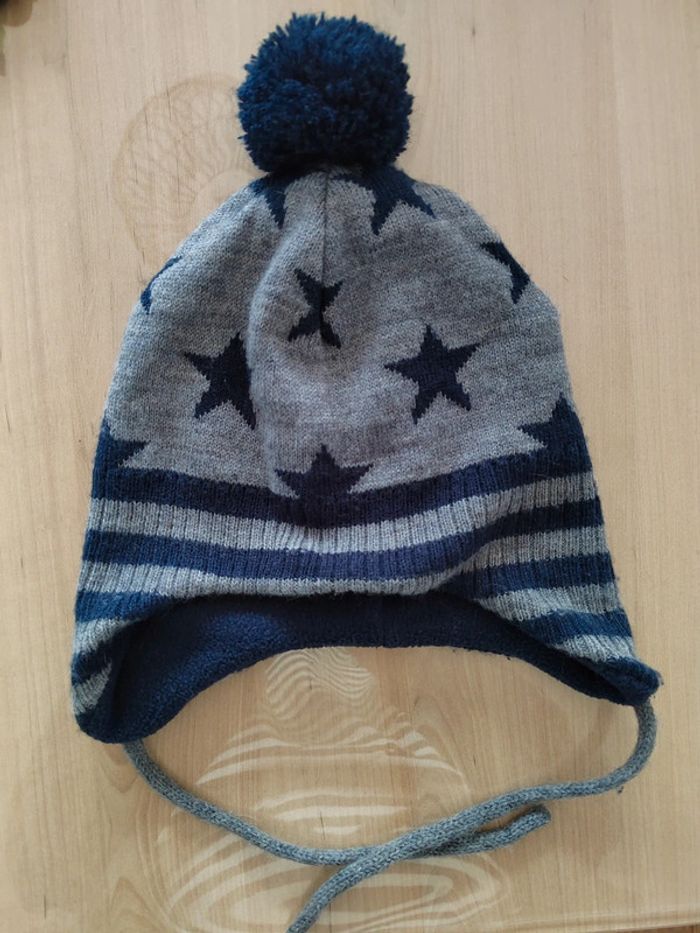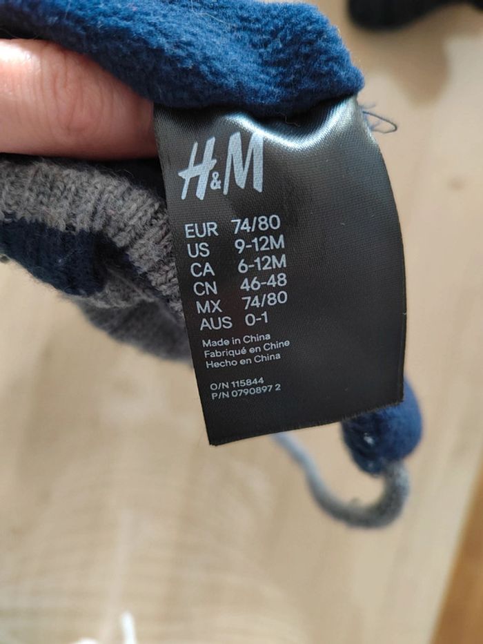 Bonnet H&M taille 74/80cm. Intérieur polaire. Couvre les oreilles. En très bon état.