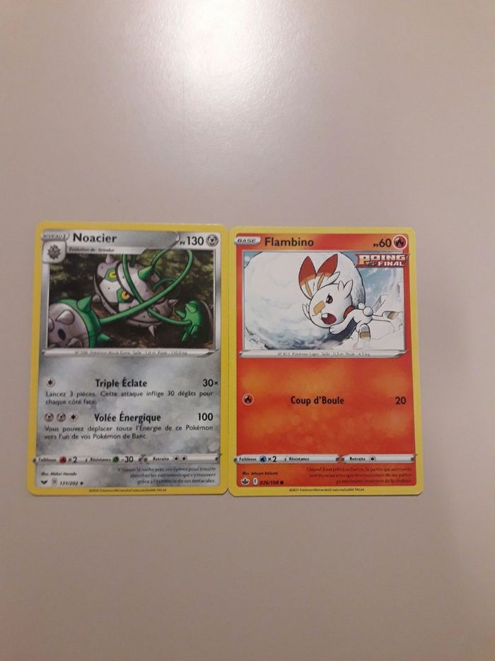 Noacier  + Flambino lot de 2 cartes Pokémon neuves