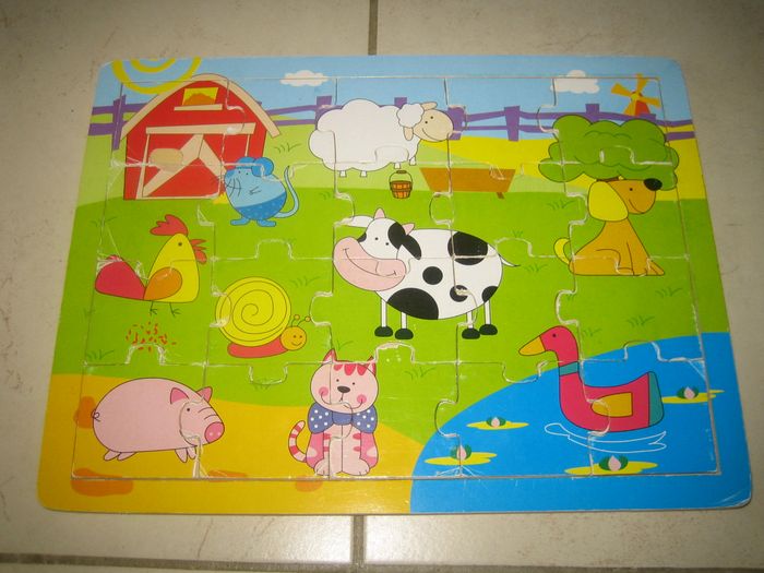 Puzzle en bois en très bon état quelques marques d'usures sur les extrémités de certaines pièces 20 pièces D'autres puzzles en bois ou non et d'autres jouets en bois sur d'autres annonces