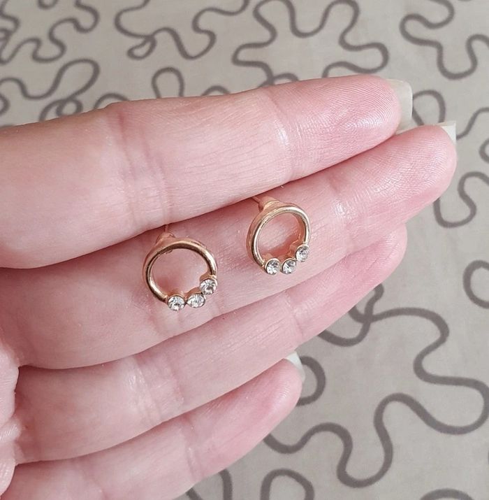 Boucles d'oreilles neuves anneaux dorés et cristaux brillants - photo numéro 2