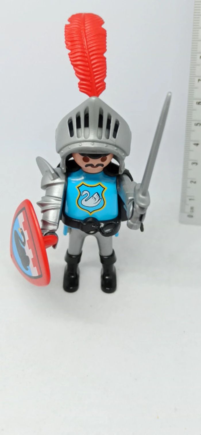 Chevalier homme bouclier et torse motif cygne avec épée playmobil