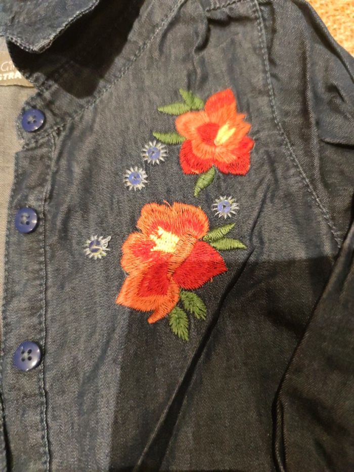 Robe effet jean broderie fleurs