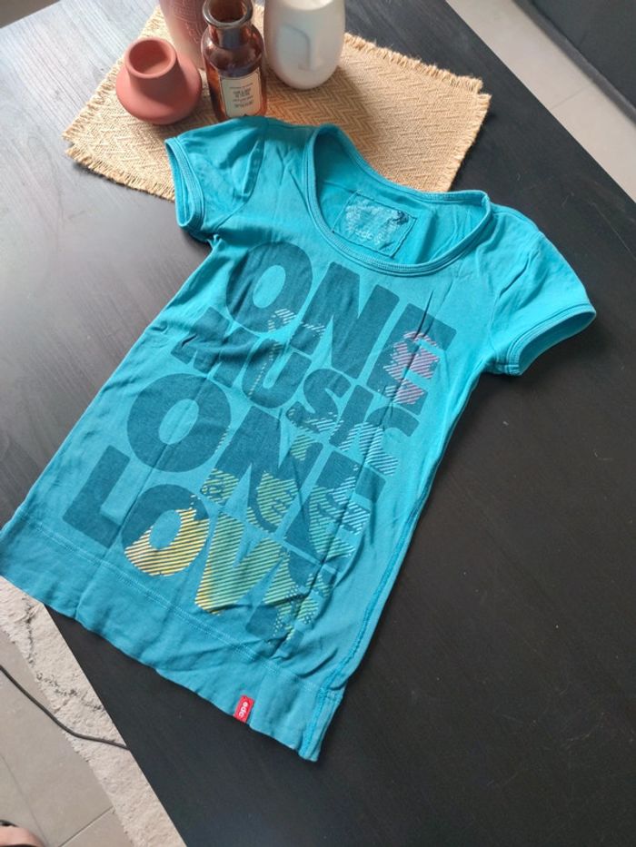 Tee shirt bleu Turquoise, taille XS, un peu porté mais reste en très bon état