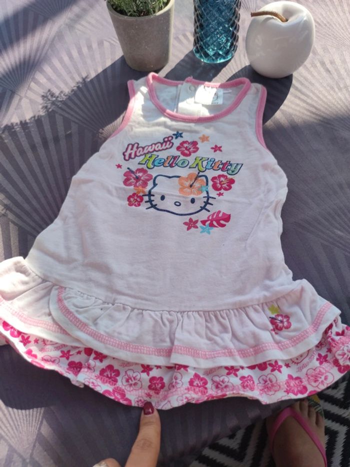 Robe hello Kitty, taille 12 mois, en très bon état,peu porté, juste une tâche jaunâtre a peine visible au niveau du flocage, fermeture par bouton pression à l'arrière #robe #robeété #robebebe12mois #robebebefille #robehellokitty
