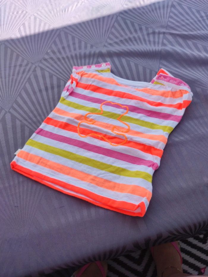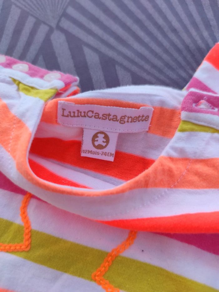 Tee shirt fluo lulu castagnette, taille 12mois, en très bon état, peu porté, fermeture par bouton sur les épaules