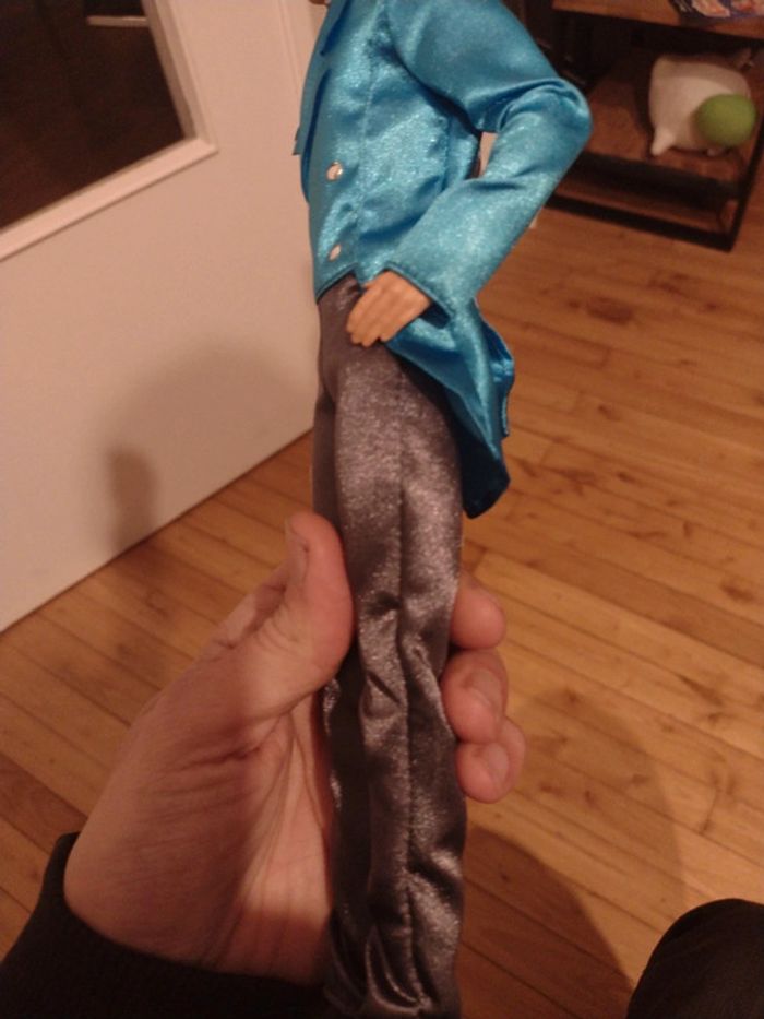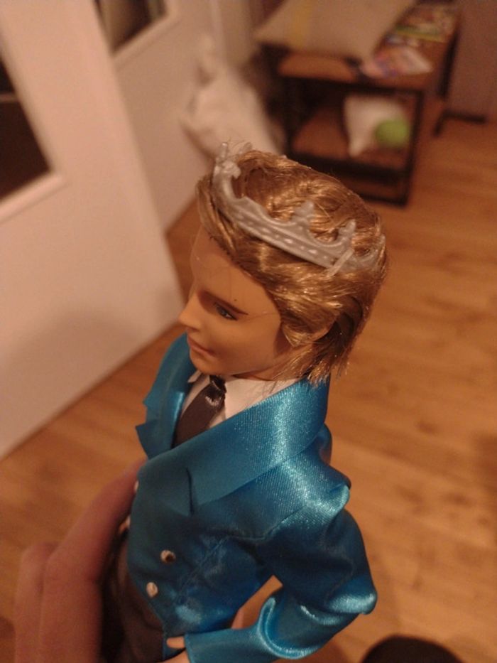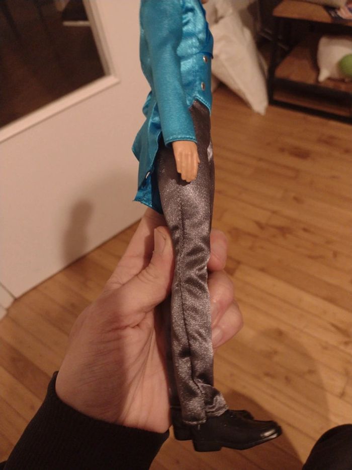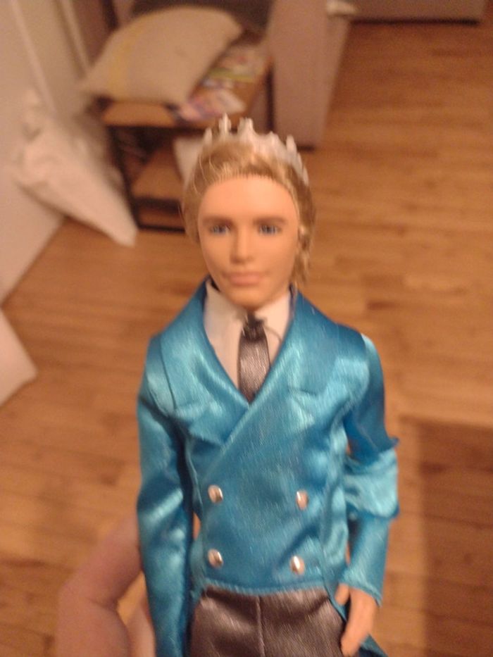 Poupée ken : Prince Liam Dans le film Barbie la Princesse et la Pop Star, le Prince est très chic dans sa veste de smoking bleu roi et son pantalon argenté. Il va faire sensation au concert de Zoé et Bethany avec son look rock'n'roll Complet et en état impeccable Chaussures, vêtements, cravate et couronne Sa belle est aussi dans mon dressing