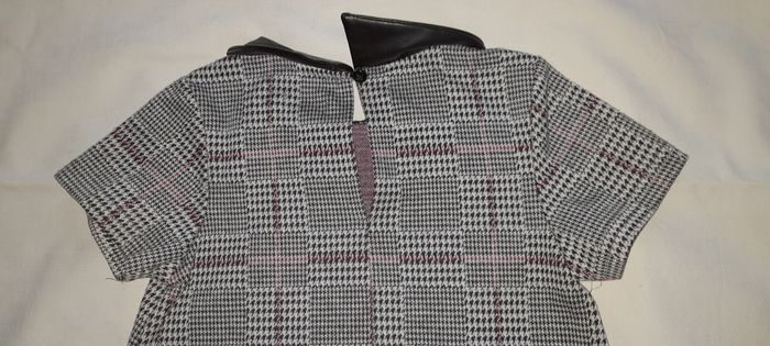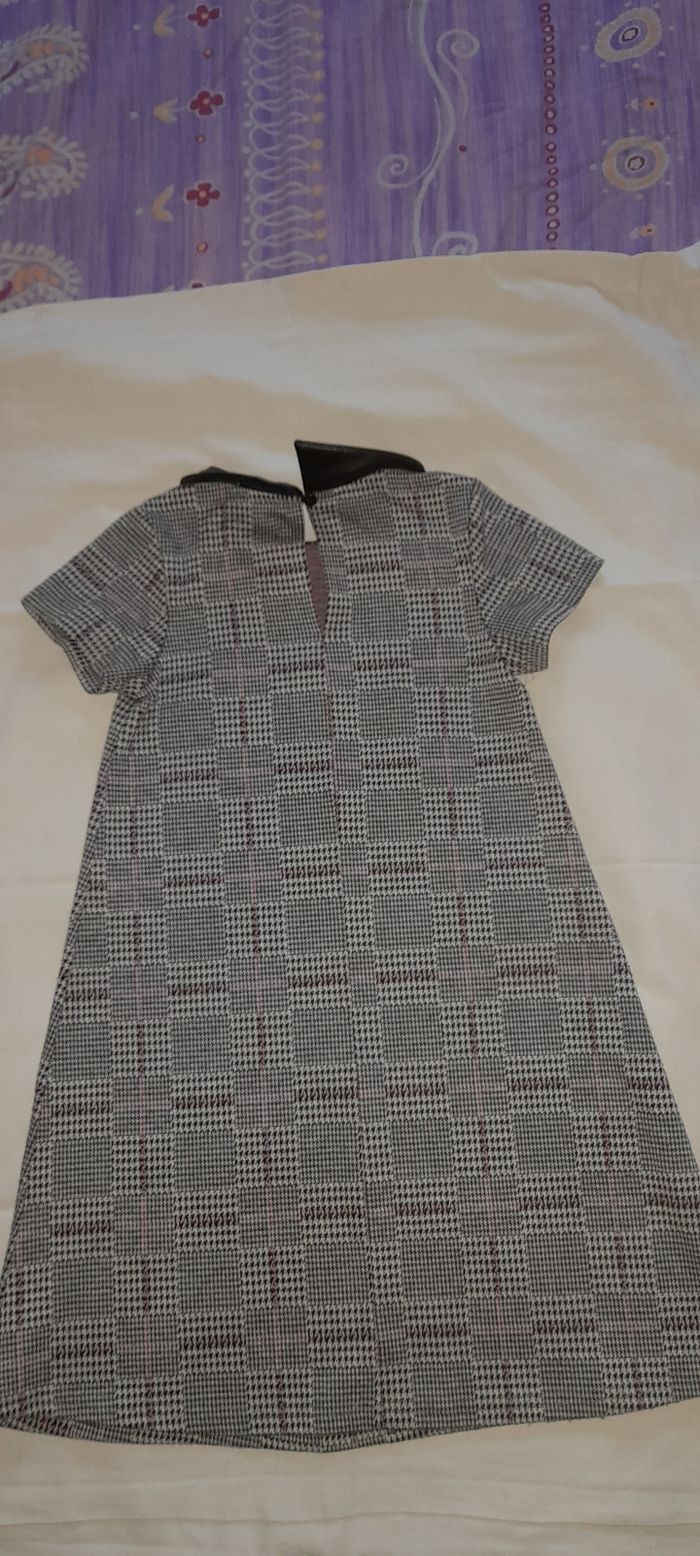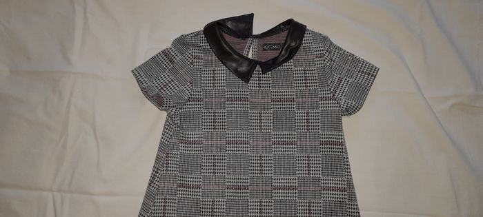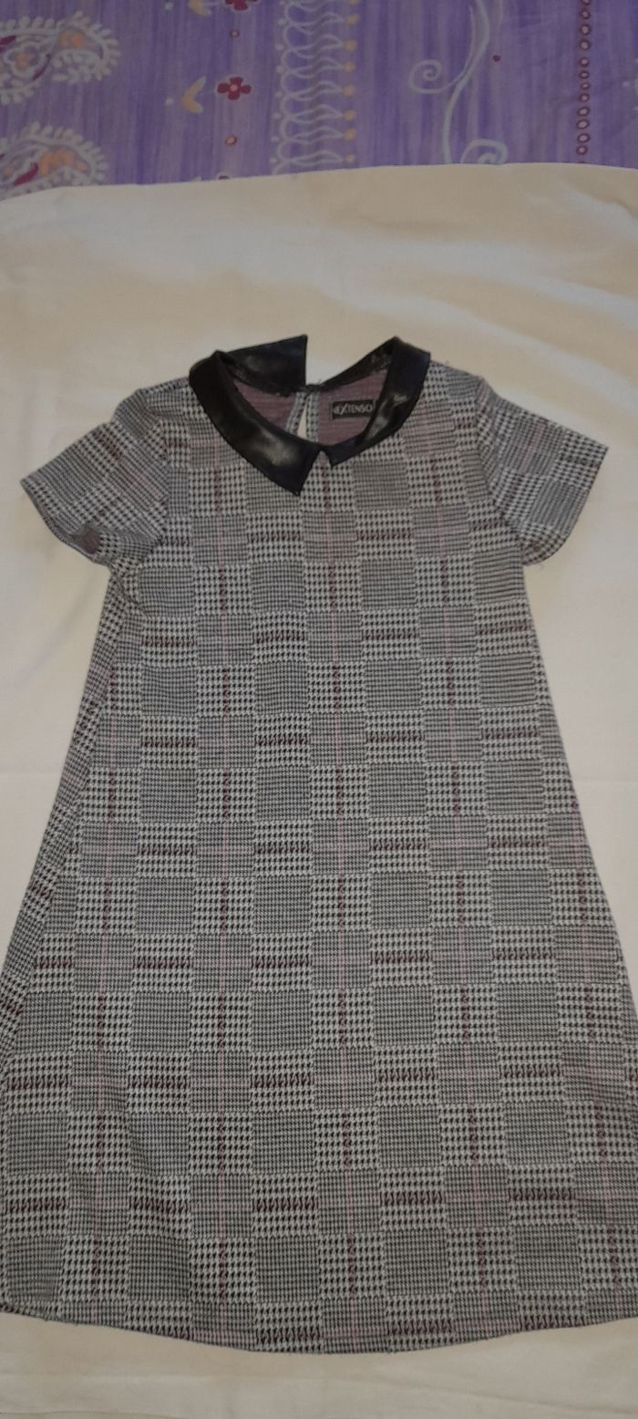 Robe grise fille à carreaux gris noir manches courtes toutes saisons petit col simili cuir in extenso taille 8 ans attache par petit bouton au niveau de la nuque peu portée pas de tâche ni de trou apparent