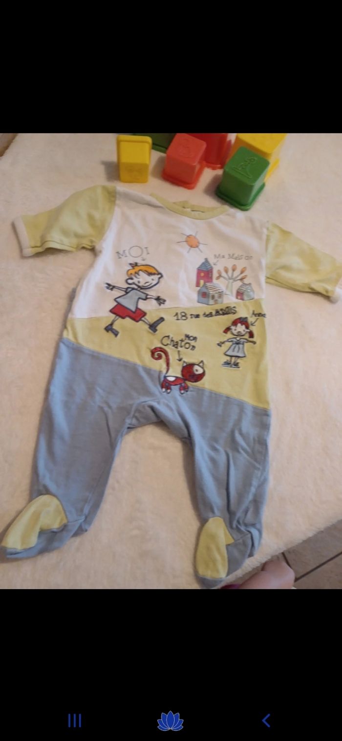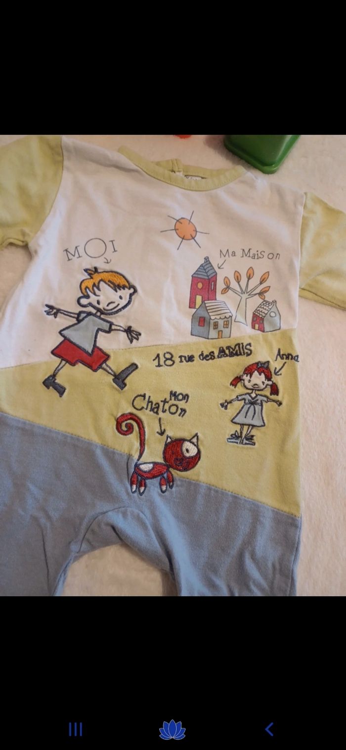 Pyjama fin avec pieds. Fermeture par pressions à l arrière. Tissu usé par les lavages