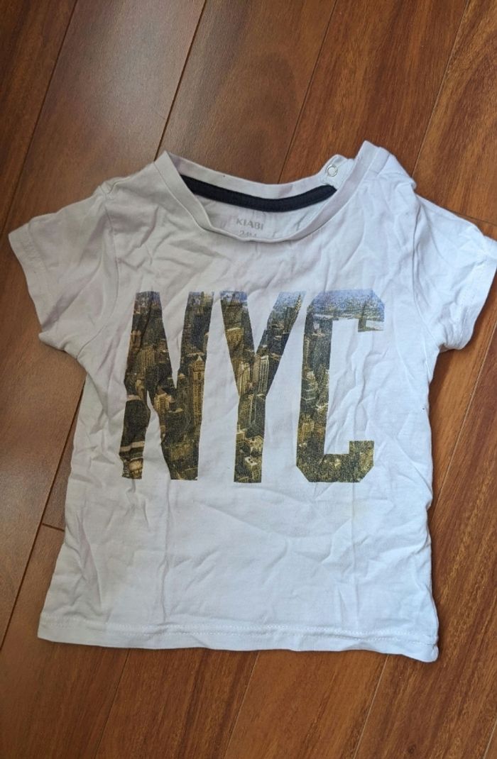 T-shirt garçon manches courtes taille 2 ans inscription NYC New York city avec dessins de buildings, bouton pression sur l'épaule gauche pour faciliter l'enfilage. Très bon état : juste besoin d'un coup de repassage. Mes autres annonces du même âge #joeypotter91_garçondeuxans