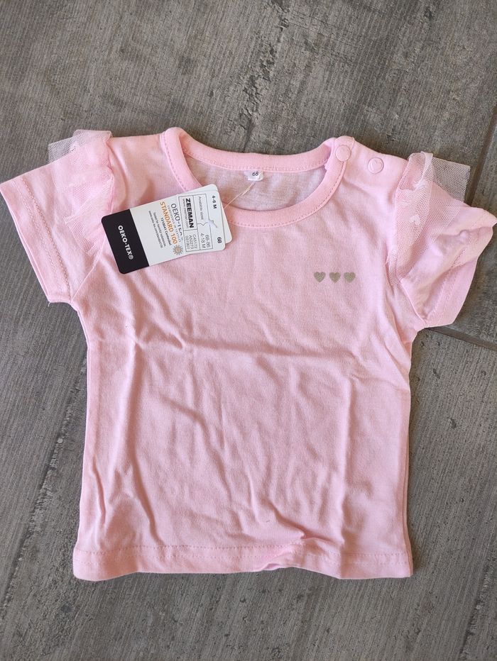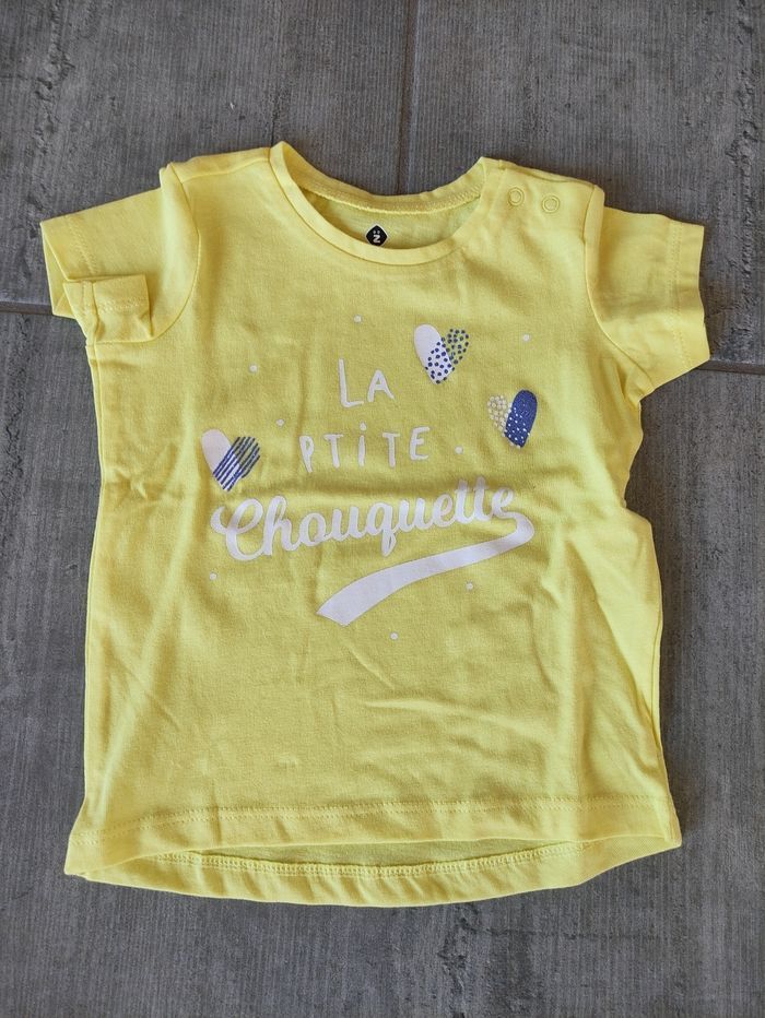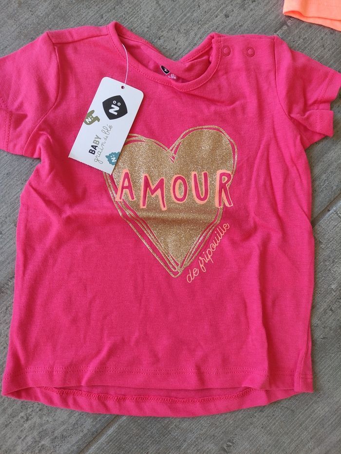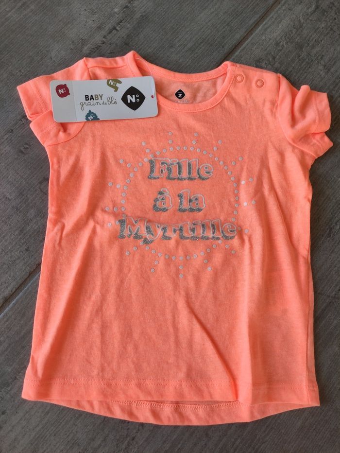 Lot de 5 t-shirts à manches courtes dont 4 ont encore l'étiquette et l'autre n'a jamais été porté. L'étiquette a été retirée seulement. Taille : 6 mois 3 de la marque Grain de blé La blouse de la marque Chicco Le haut rose de la marque Zeeman Je vend un autre lot 6 mois été.