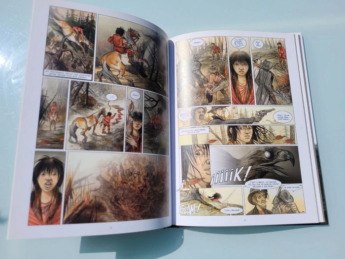 C’est une vallée très reculée, quelque part au fin fond d’un pays froid qui pourrait être l’Alaska ou la Sibérie. Presque personne n’y vit, hormis la faune sauvage et un peuple autochtone discret. Hélas, le sous-sol regorge de matières premières et bientôt les affairistes déferlent, pressés d’y construire une ville, des mines, un barrage… Les premières exactions surviennent ; personne ne doit faire obstacle au « progrès ». Mais il y a pourtant un témoin silencieux à cet immense désordre : Kraa, un jeune aigle très puissant qui a appris la survie, maître secret de la vallée. Avec Yuma, un adolescent indien dont on vient de massacrer la famille, et avec lequel il a développé un lien d’essence chamanique, Kraa, dont la voix off sert de fil rouge au récit, entre en résistance… En très bon état Couverture rigide Prix neuf : 18€ Pour rentabiliser vos frais de port, pensez à regarder mes autres livres : #livreenfantmooglou #bdmooglou