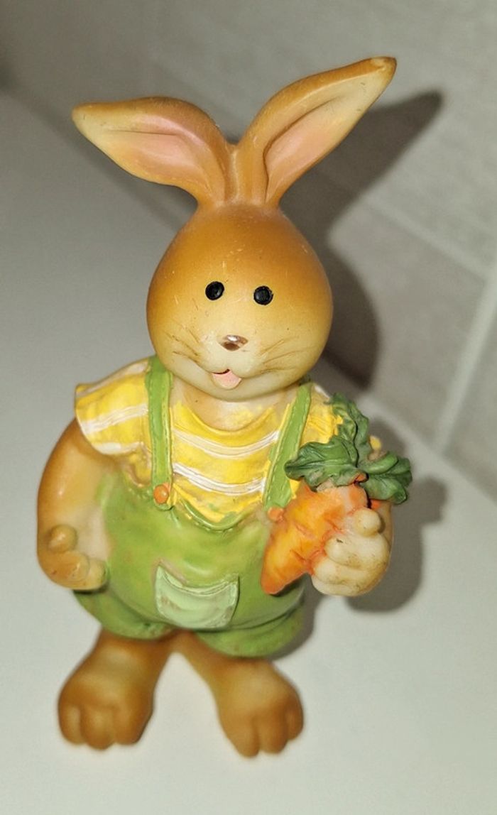 Figurine. Lapin 🐰 et ses carottes 🥕. Hauteur 9cm. En résine.