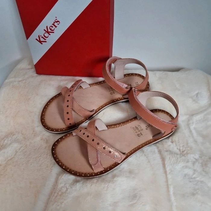 Sandales kickers Couleur rose métal Fermeture scratch Taille 33