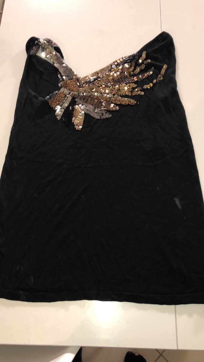 débardeur petite tache à droite ce photo ( je pense qu’elle partirai au lavage )