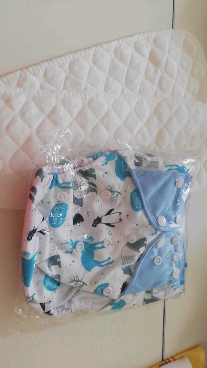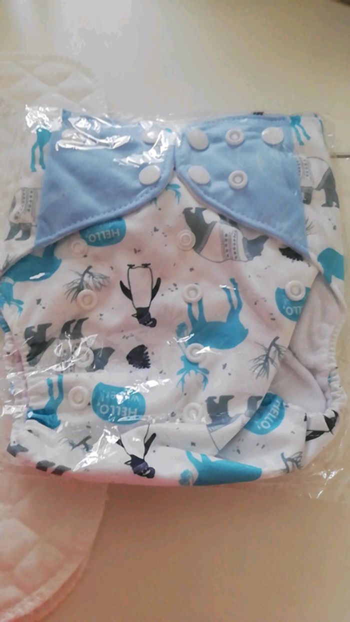 Couche lavable neuve Snow ours pingouin cerf bleu /turquoise / blanc Taille unique, pour tous les bébés de la naissance à la propreté (multi pressions) Inserts neufs coton x2