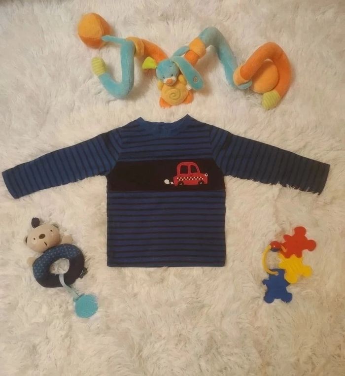 Tee-shirt manches longues à rayures "Voiture" T. 18 Mois 💮 60% Coton 40% Polyester - photo numéro 1