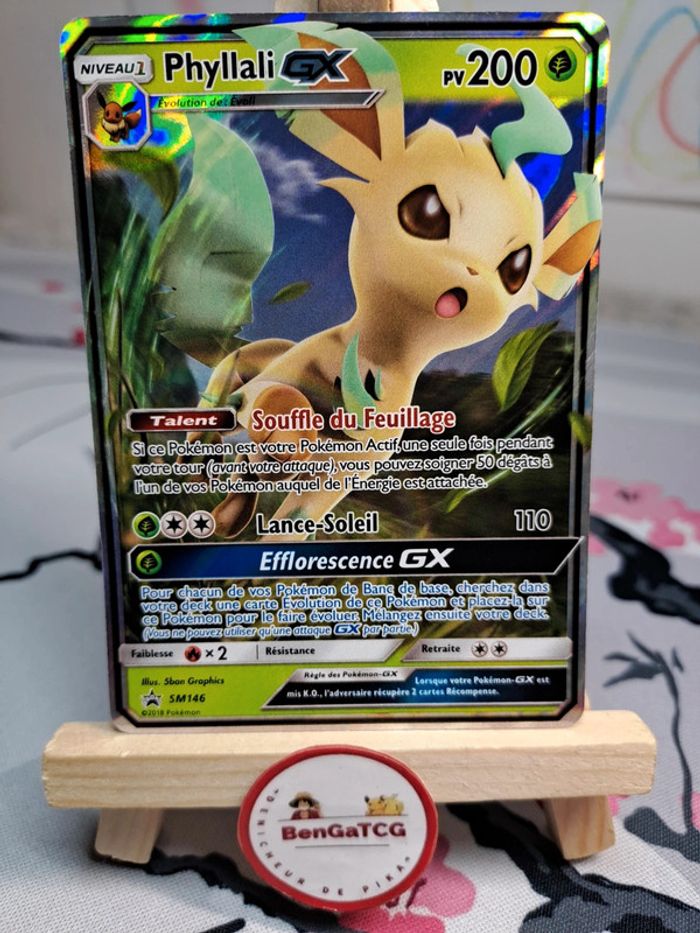 Carte Pokémon Phyllali GX SM146 Promo Soleil & Lune Fr Etat neuf/NM Sortie de booster et mise sous sleeve Retrouvez toutes mes cartes Pokémon avec ce lien #poke_BenGaTCG et encore plus de liens sur mon profil N'hésitez pas à me contacter pour composer un lot afin de bénéficier de réductions ou tout autre renseignement, plus de photo à la demande. Bon shopping 🛍