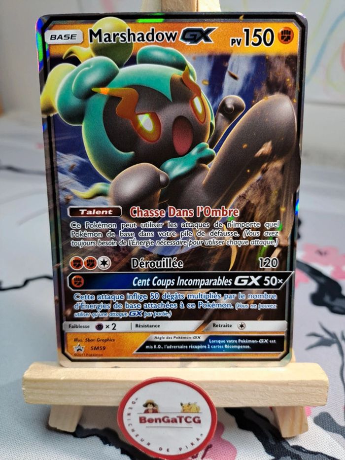 Carte Pokémon Marshadow GX SM59 Promo Soleil & Lune Fr Etat excellent Quelques micro points blancs sur les bords Retrouvez toutes mes cartes Pokémon avec ce lien #poke_BenGaTCG et encore plus de liens sur mon profil N'hésitez pas à me contacter pour composer un lot afin de bénéficier de réductions ou tout autre renseignement, plus de photo à la demande. Bon shopping 🛍