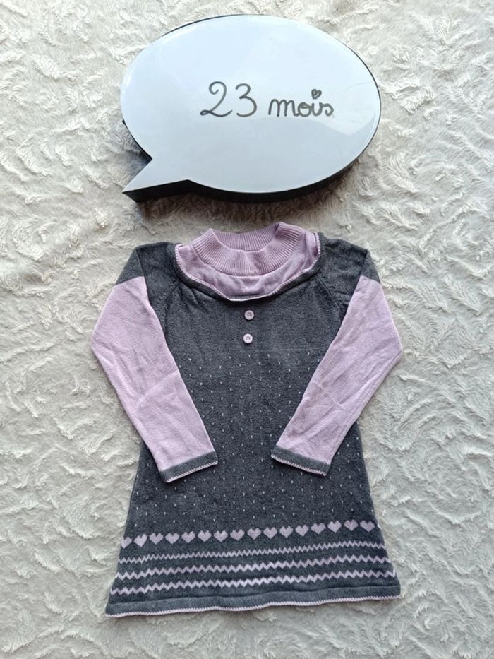 Robe pull manches longues Fille 23 mois Cœur 100% coton - photo numéro 2