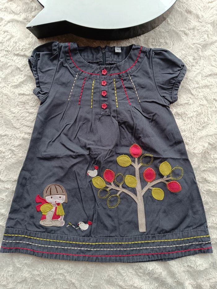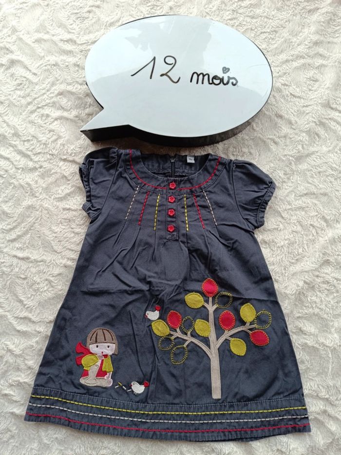 Robe manches courtes Fille 12 mois Oiseau 100% coton - photo numéro 1