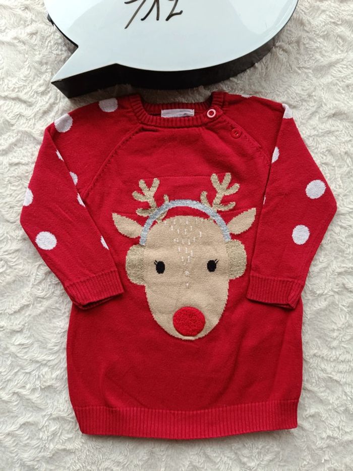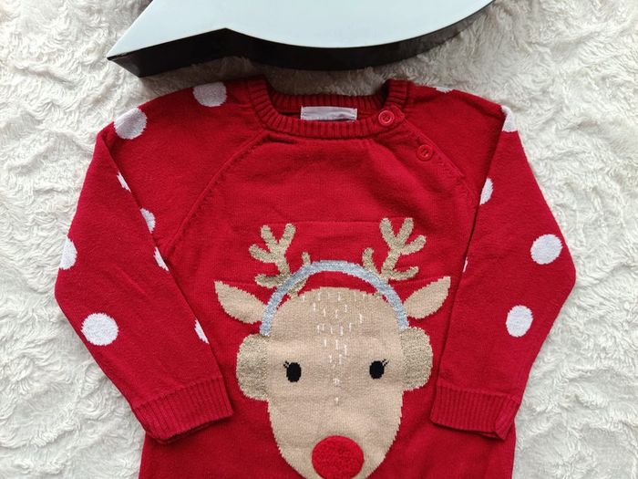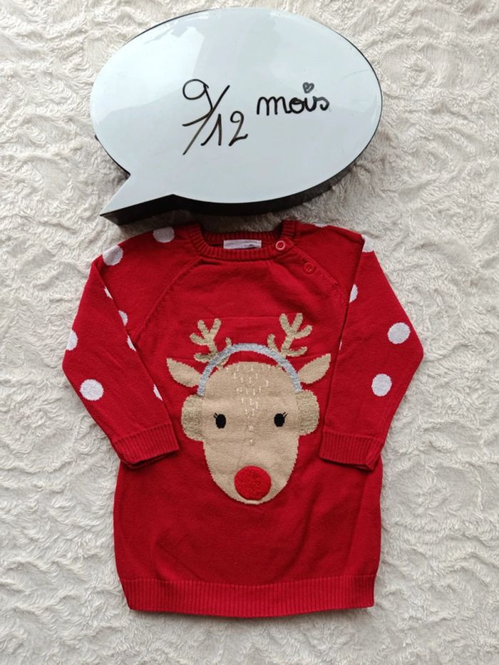 Robe pull manches longues Fille 9/12 mois biche renne Noël Primark
