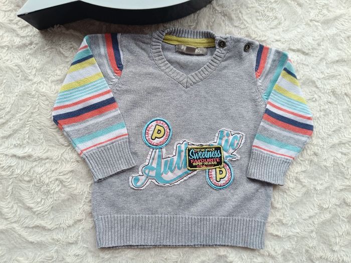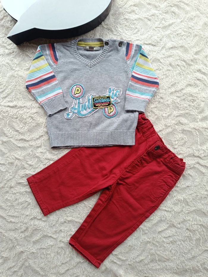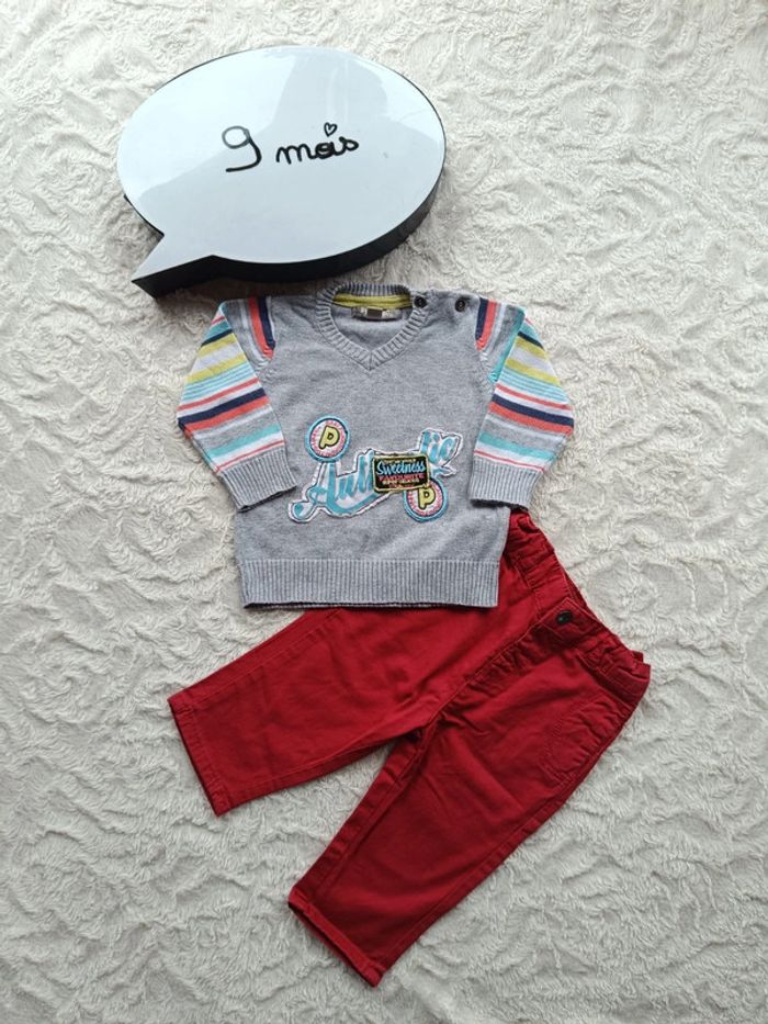 Très bon état. Le pull est de marque Pik Oui, 100% coton. Le bas est de marque Orchestra, taille réglable. #nathatfcGarçon9mois