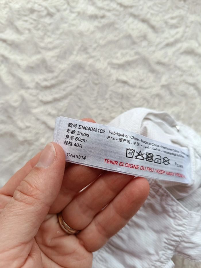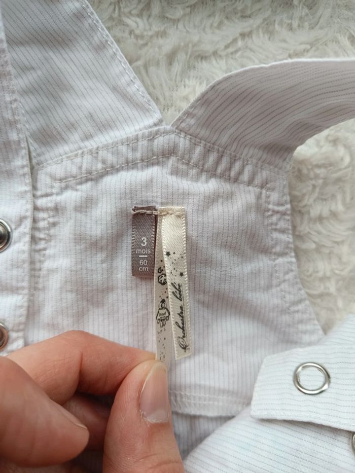 Très bon état. 2 hauteurs de bretelles possibles. Ouverture par pressions au niveau de l'entrejambe pour un habillage et un change plus facile. #nathatfcGarçon3mois