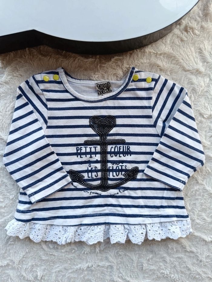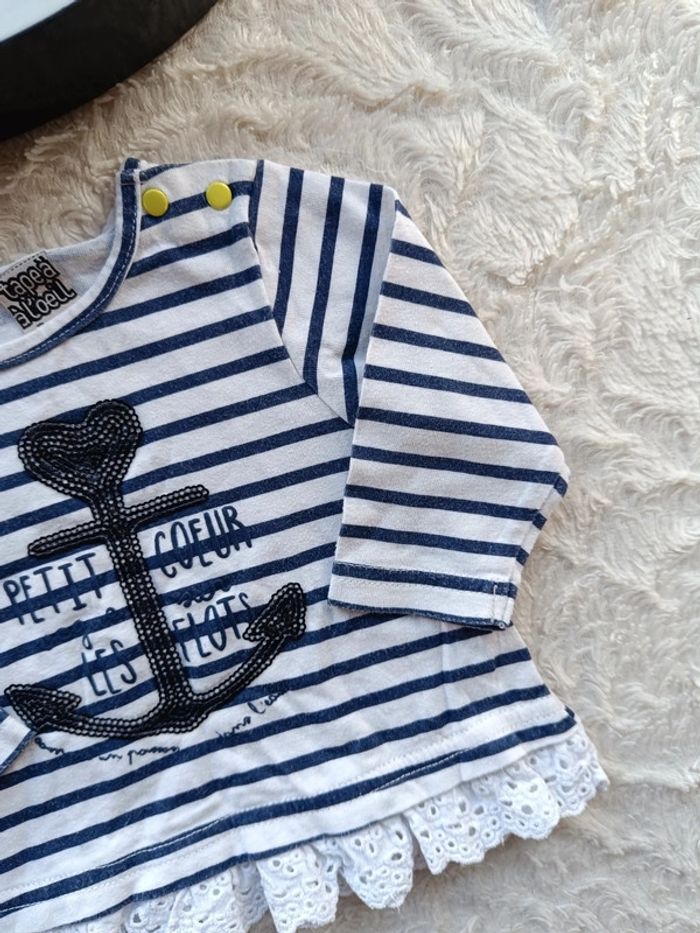 Blouse tunique chemise manches longues Fille 3 mois cœur ancre marin Tao 100% coton - photo numéro 9