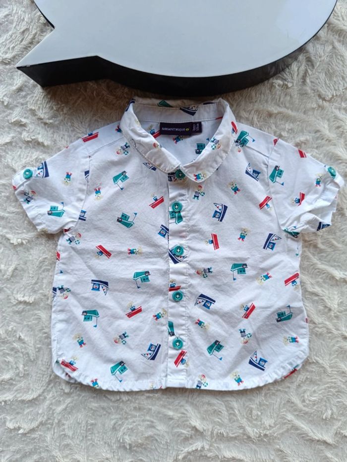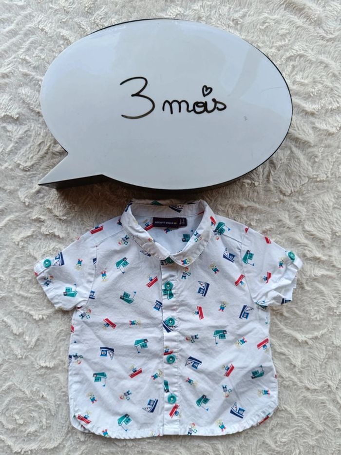Chemise manches courtes Garçon 3 mois bateau marin Sergent major Taumeo 100% coton - photo numéro 1