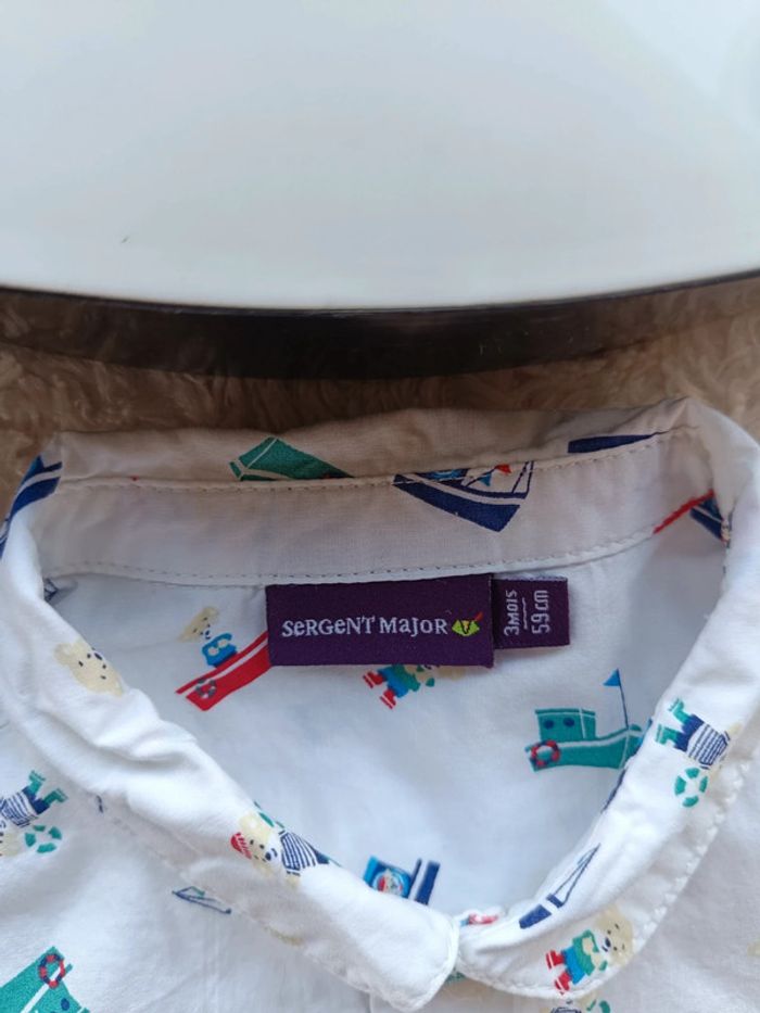 Chemise manches courtes Garçon 3 mois bateau marin Sergent major Taumeo 100% coton - photo numéro 5
